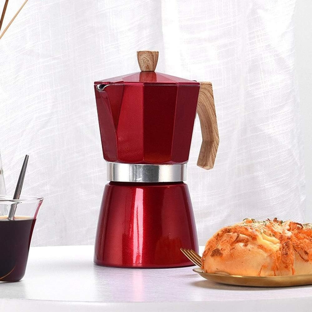 Sturdy aluminium coffee pot absorbs heat quickly for faster, efficient brewing, A long-lasting silicone gasket prevents leaks, while an easy-pour spout and cool-touch handle and lid make pouring easy. This moka pot can be heated and extracted using electric ceramic stove, electric stove. Product Dimensions: 8.5x16cm/10.5x23cm. Capacity: 3/9 cup. Packing list: Mocha pot x 1. When using cold water for extraction, the height of the water must not exceed the safety valve. Tighten the upper and lower pots firmly to prevent air leakage. Pure manual measurement, please allow a little error, please understand.