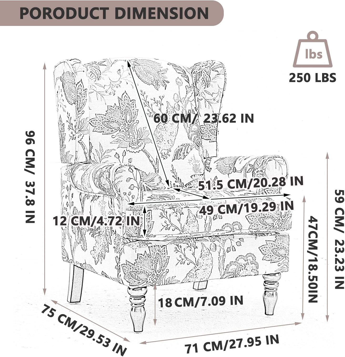 Vintage Tartan Pattern Breathable Fabric Material Durable Solid Wood Frame Soft High-resilient sponge Specifications Color Options: Gray Check, Natural Check, Blue Check, Green Check Seat Width: 49 CM / 19.29 IN Seat Height: 51.5 CM / 20.27 IN Seat Depth: 47 CM / 18.5 IN Product Dimension: 71W*75D*96H CM / 29.52W*27.95D*37.79H IN Cushion Thickness: 12 CM / 4.72 IN Surface Material: Linen Filling Material: Sponge The Max Weight Capacity: 250lbs/113.4 kg Assembly Status: Assembly Required Package Includes 1 x Armchair with Padded Seat 1 x Hardware 1 x Manual