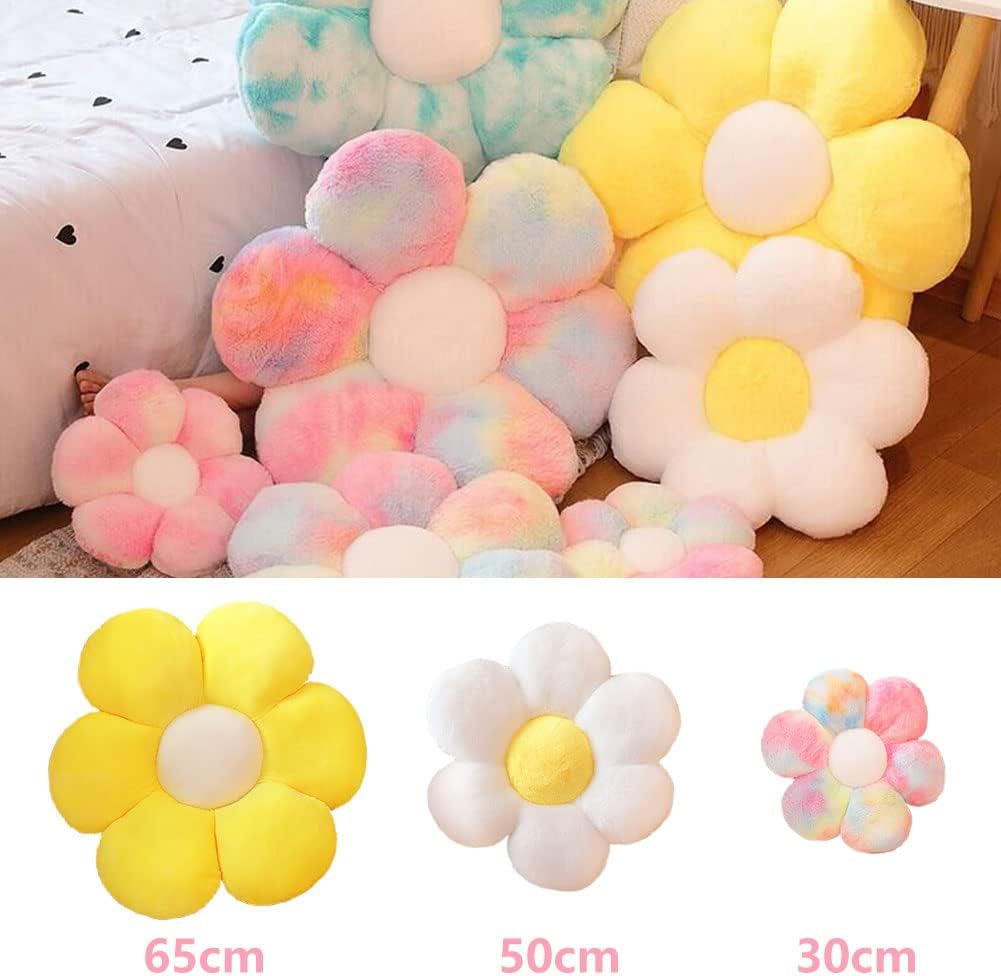 ★★★SUUGGEST:The Flower Pillow 30cm/11.8in pillow is relatively small, if you need more practical and beautiful, suggestions you can buy 50cm/19.69in or 65cm/25.59in.Flower Floor Pillow Seating Cushion Floor Colorful Plush Throw Pillows for Home DecorProduct description:Material: This Flower Pillow comes in two fabrics, crystal velvet and imitation rabbit velvet, inside filling: PP cotton.Size: Diameter: 30cm / 11.8",50cm/19.69",65cm/25.59".Shape: Flower Shaped.Color: Multicolor, Blue, Yellow, White, Pink, Purple, Red, Dark Green, OrangePackage Contents:1x Flower Shaped PillowNotes:1. Due to screen differences, the color may be slightly different from what you expect, please allow.2. Please allow 1-3cm difference due to manual measurement.3.Because Our Round Pillow is packed in a vacuum bag. When you receive them, take them out and pat them a few times to fluff them up.Pillows may take up to 24 hours to recover, please be patient. 4.If you have any quality problems with the products you received, you can contact us at any time, and we will reply you within 24hours.