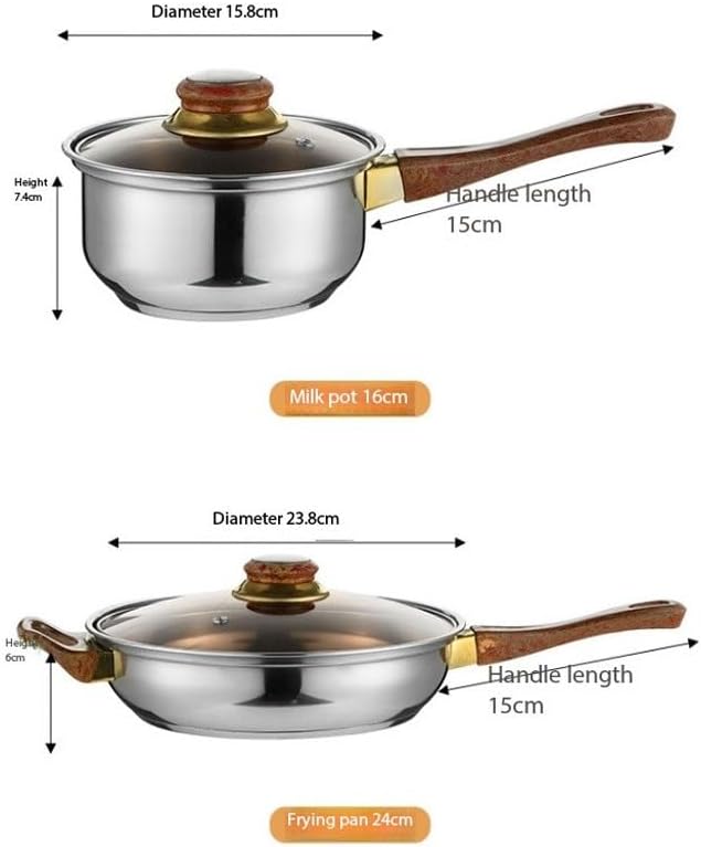 : Cookware SetMaterial: Stainless steelSize: As shown Color: As shownFunctions: Making soup/porridge/frying steak, etcWhether it is packaged: YesIncluding the lid: YesPacking List: Cookware set *1 set (excluding other exhibits)Note:Due to manual measurement, please allow an error of 2 to 3 centimeters.Due to the difference in lighting, the actual color may be slightly different from the pictureWhether cooking a favorite recipe or an experimental new dish, this collection is tough enough to take on all your cooking needs.