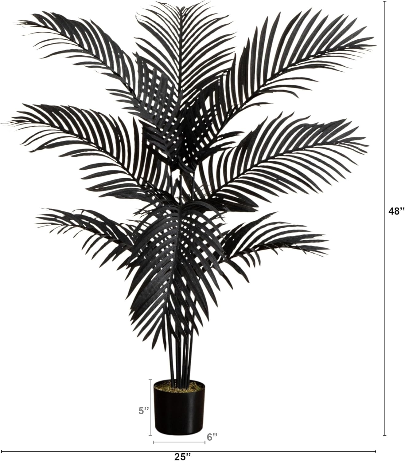 Transform your space into a haunted oasis with this 4ft. Artificial Halloween Black Paradise Palm Tree. Standing at 4 feet tall, this eerie twist on a classic favorite is perfect for adding a spooky touch to your Halloween decor. Crafted from premium materials, each frond is meticulously detailed and can be bent and shaped for a custom look. Whether you choose to add Halloween accents or display it in a decorative planter, this palm tree is sure to stand out in any indoor space. With little to no maintenance required, this dramatic piece brings an eerie tropical flair to living rooms, party setups, and more. Get ready to add a touch of Halloween magic to your home with this unique and eye-catching black paradise palm tree.