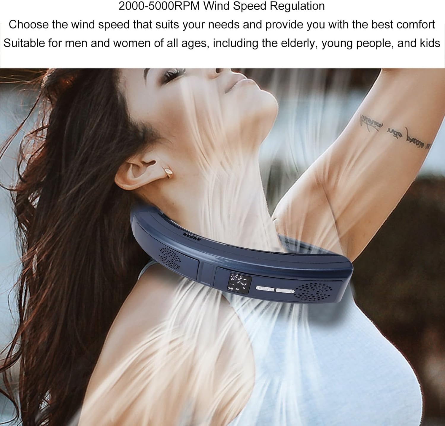 1. [Safe Bladeless Design] The bladeless design of the neck fan ensures safe usage while the wearable aspect offers convenience, suitable for outdoor travel cooling. 2. [Adjustable Wind Speed] 2000 to 5000rpm wind speed adjustable, with just a simple press of a button, choose the ideal wind speed for the best comfort. 3. [Dual Use] Apart from cooling function, our hot and cold neck fan also provides heating feature, helps reducing neck fatigue during long term work. 4. [LED Display] The wearable fan comes equipped with an LED display that shows the power and wind speed level in real time, making operation convenient and easy. 5. [Suitable for All Ages] This personal fan is versatile and suitable for men and women of all age groups, including seniors, young people, and kids. Specification: Item Type: Neck Fan Material: ABS Wind Speed: 2000-5000rpm Battery Capacity: Lithium Battery 6000mAh (Included) Weight: Approx. 627g / 22.12oz How to Use: Button operation to use. packing list: 1 x Neck Fan (Battery Included) 1 x USB Cable 1 x User Manual