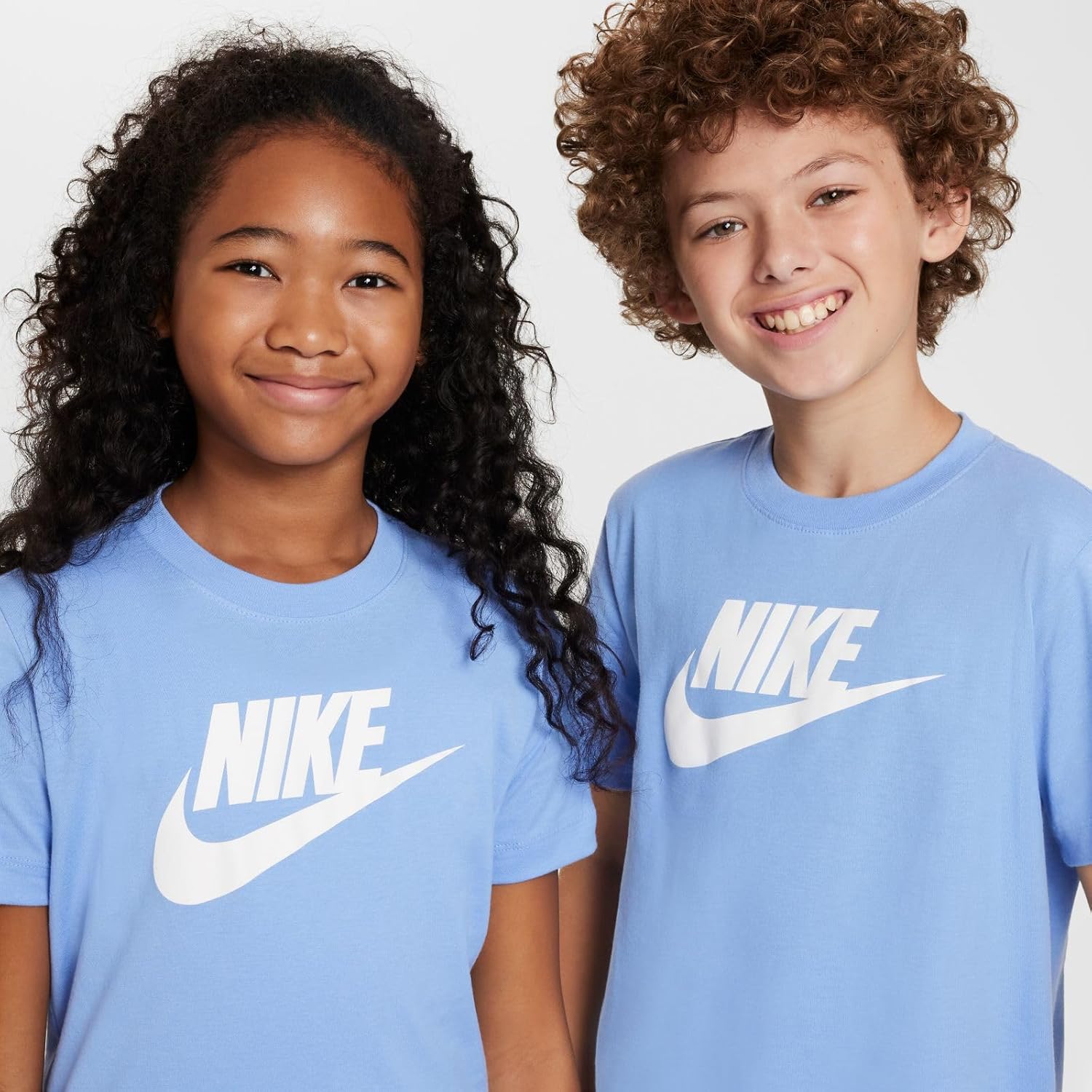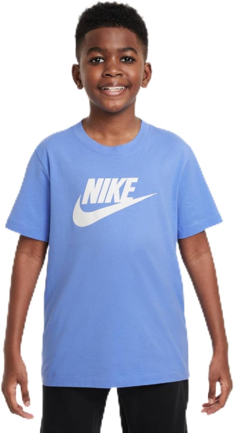 You can't go wrong with classic Nike style. Made from soft and breathable cotton, this Nike Kids NSW Tee Futura HBR has an easy fit that's perfect for all your daily adventures. This pullover style tee features a crew neck, short sleeves, straight hem, and brand logo on the chest. 100% cotton. Machine washable. Imported.