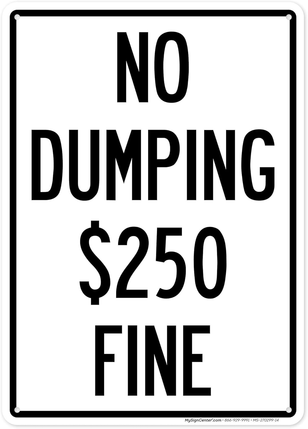 No Dumping 250 Fine Sign, 12x18 Inches, 55 mil thick HDPS (high density polystyrene), Made in USA by My Sign Center