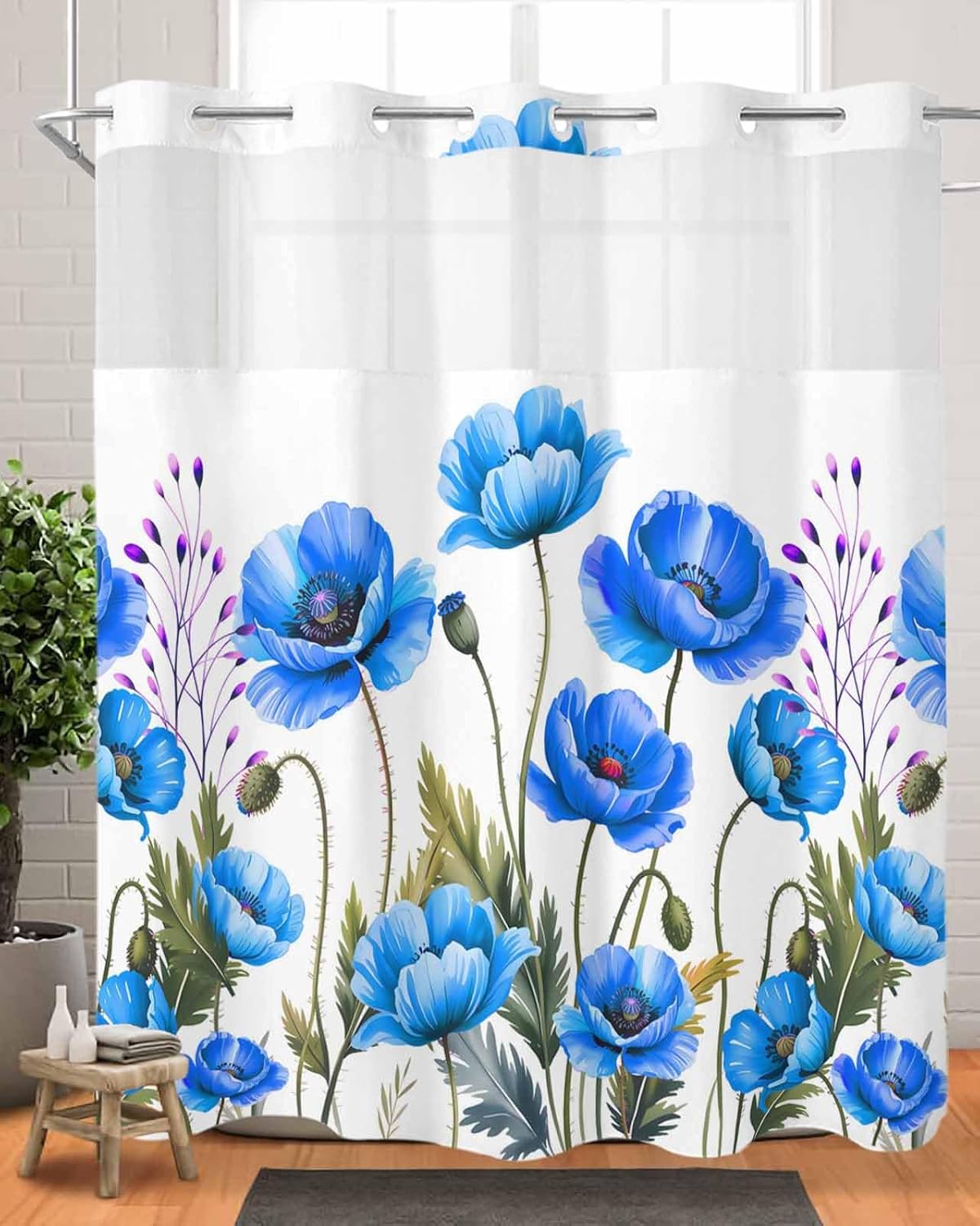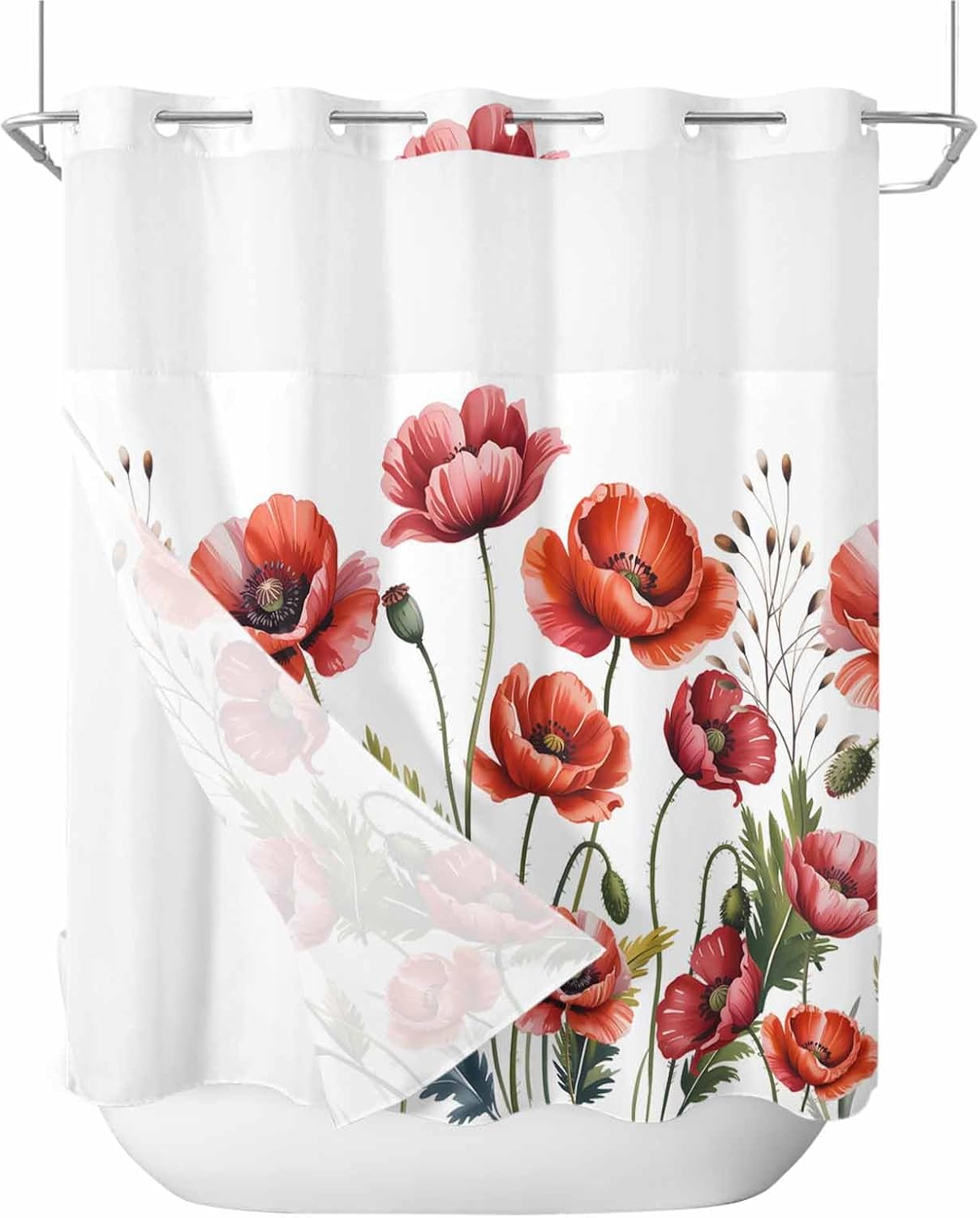 Anzona No Hook Double-Layer Embedded Shower Curtain with LinerMaterial: PolyesterSize: 72"W x 78"L / (183x198cm)Hole Count: 10Number of Snaps: 12- Luxury Shower Experience: Boho shower curtains are designed with a water-repellent coating that repels water and encourages the formation of water droplets, allowing water to quickly roll off the surface, creating a luxurious, spa-like feel when showering or bathing.- See Through Mesh Top Window: The translucent mesh at the top of the shower curtain with liner brightens the bathroom and maintains privacy. The see-through window also helps water evaporation, preventing the formation of moisture conditions and promoting a healthier bathroom atmosphere.- Functional Curtain: From bathroom to decorative accents, curtains or stylish dividers, modern shower curtain are also perfect for camping adventures, hotel stays, dorm life and more, adding a touch of sophistication to any environment. Cloth shower curtain makes a wonderful gift for cherished occasions like birthdays, housewarming, parties and more.- Easy to Install: The fabric shower curtain liner can be replaced with its snap-in buckles, no need to remove the shower rod and the magnet help the liner to keep in good place. No hooks needed design of farmhouse shower curtain with built-in rings for easy on and off ,easy to hang and slide along the pole.- Various Theme Decor Curtain: Anzona no hook shower curtains feature beautiful patterns and vivid colors, come in a variety of themed designs, such as beach, coastal, modern, boho, vintage, classic, elegant, botanical, animals, abstract, holiday, eucalyptus, farmhouse, floral, and more, enjoy any bath and shower atmosphere you want.- Easy to Care: Elegant shower curtains for bathroom daily maintain only wipe or shake off water and hang easily outside the tub, air dry. Machine washable.