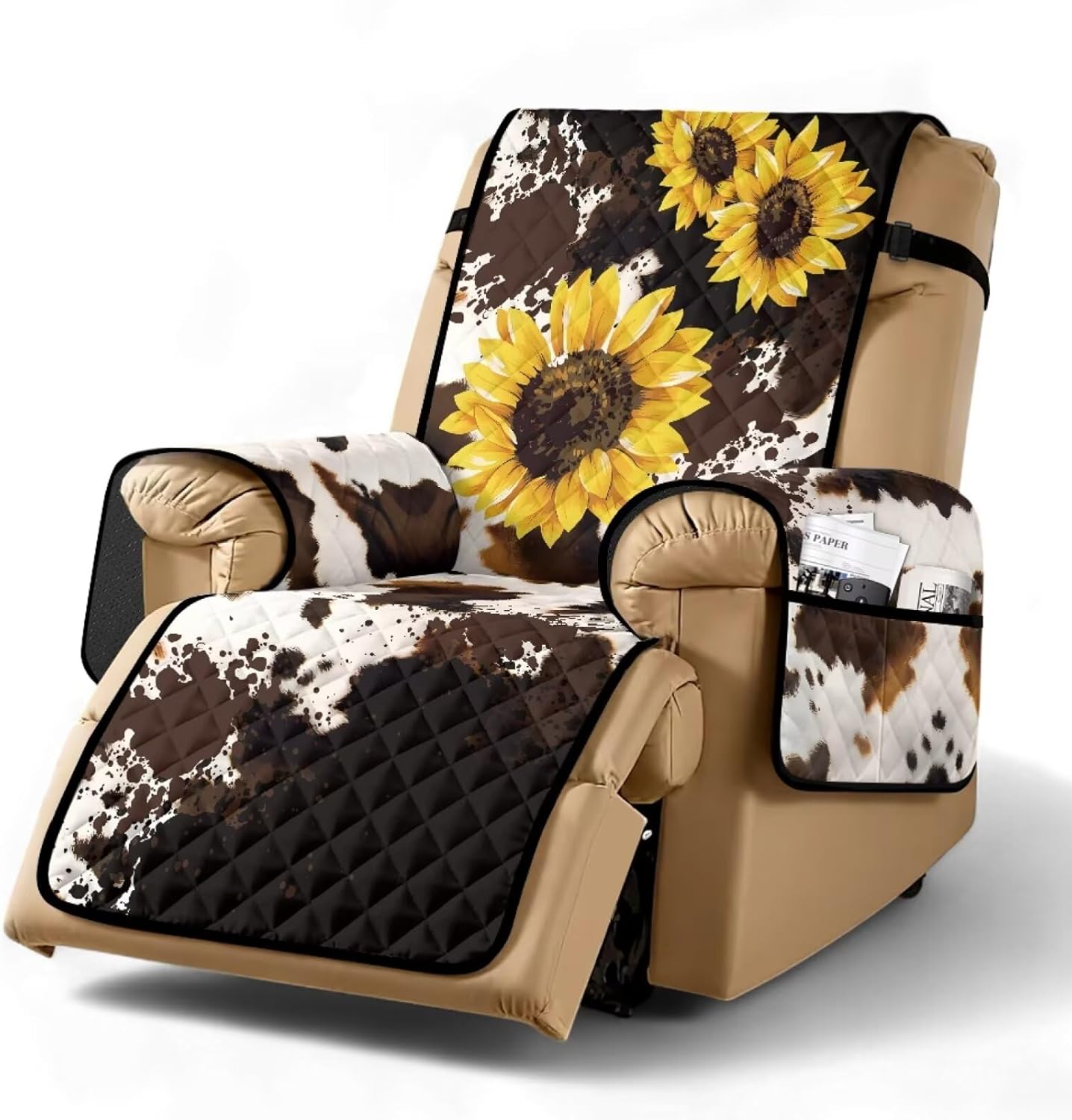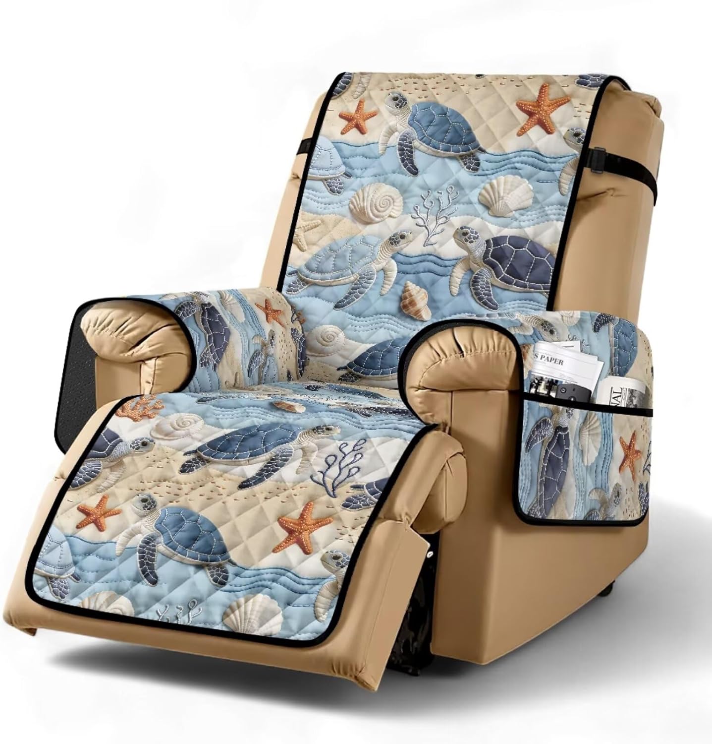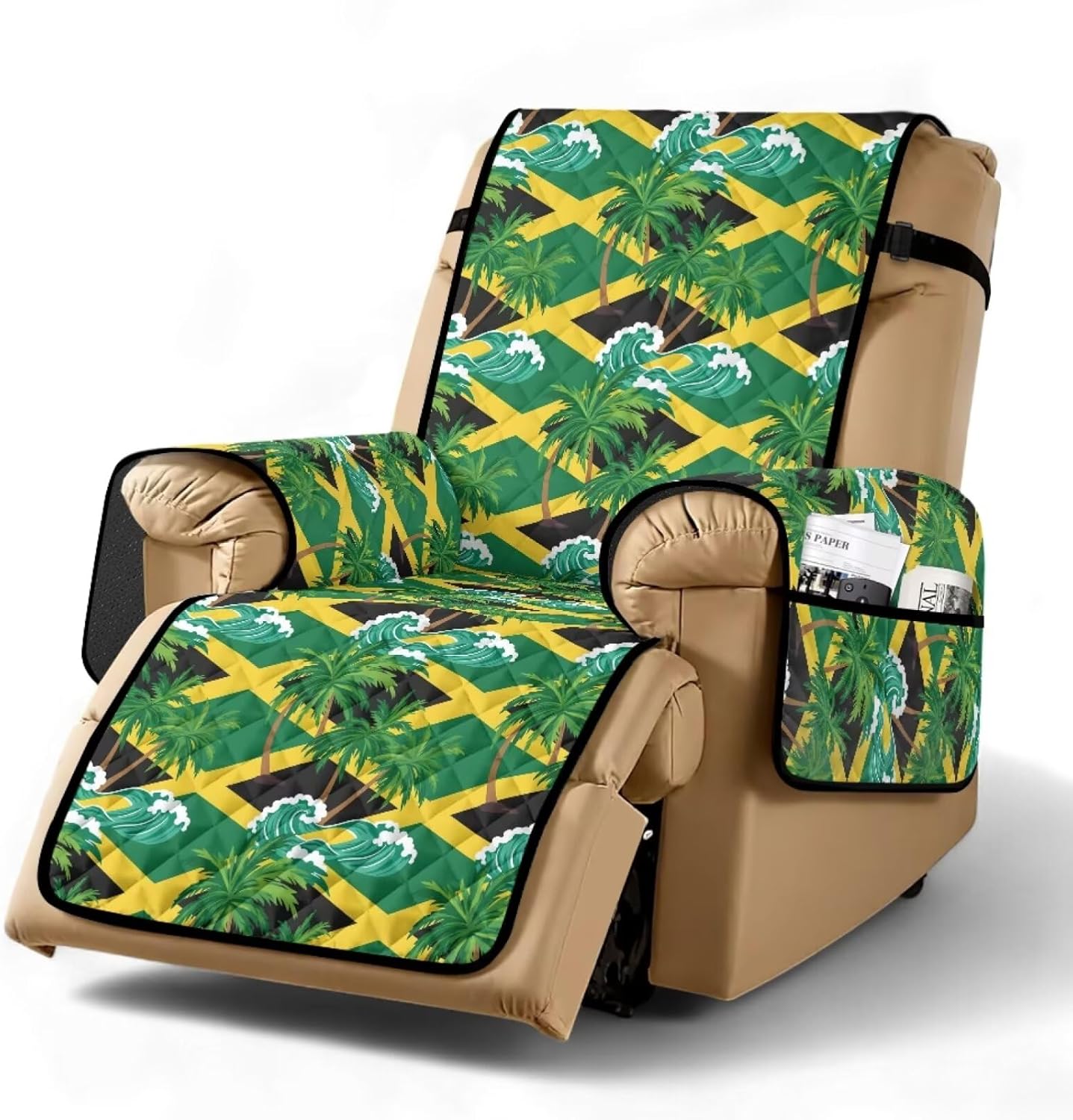 Refresh and protect your recliner chair with our custom-fit recliner slipcover, expertly designed to fit most standard recliners with a seat width of 23.6 inches, armrest width of 22.2 inches, and back length of 39.8 inches. Refer to the measurement guide in the product images for accuracy. The flexible, stretchable design allows you to tuck any excess fabric into the seams for a clean, tailored fit that looks professionally installed—no tools or assistance required. Crafted from a premium blend of polyester and spandex, this recliner cover offers a soft, comfortable feel while maintaining a snug, wrinkle-free fit. The unique colloidal non-slip backing, combined with elastic straps at the top, ensures the cover stays securely in place—even on smooth leather furniture. Say goodbye to shifting or sliding covers. Whether you're protecting against daily wear, pet claws, or kids'messes, this all-around protector guards your chair from scratches, dust, dirt, and pet hair, keeping your furniture looking fresh and new. More than just protection, our recliner sofa cover enhances your home decor with a range of stylish, modern patterns to match any interior. Two convenient side storage pockets provide easy access to remotes, glasses, books, or magazines, helping you keep your living space tidy. Installation is quick and intuitive—simply follow the included visual guide and you'll have it fitted in minutes. When it's time to clean, just remove the cover and toss it in the washing machine. Durable, practical, and beautifully designed, this recliner chair cover is the perfect solution for pet owners, families, and anyone who values both comfort and style.