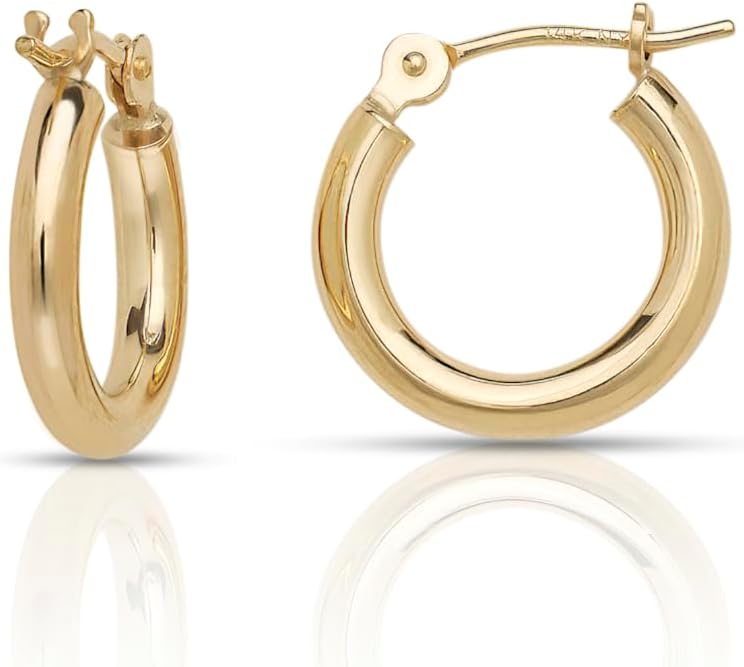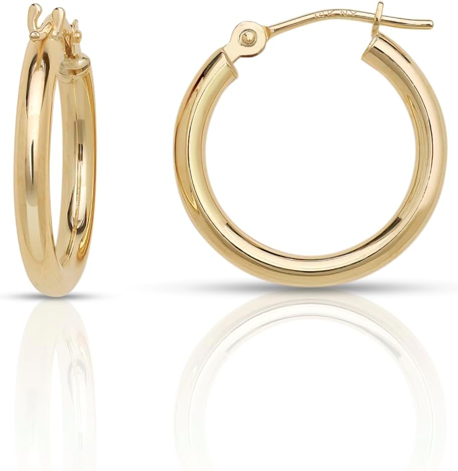 The classic and timeless and go with everything in my wardrobe. The 14k gold tube is a perfect weight - not too heavy or light - and the hollow interior makes the style incredibly comfortable to wear all day. I also love the click-down clasp, which ensures they stay securely in place. I can see myself wearing these earrings for years to come. They honestly always remain in style!