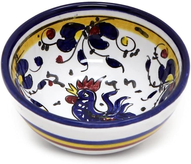 The Orvieto Blue Rooster Collection is a timeless masterpiece of traditional Italian craftsmanship. This unique design originated during the Renaissance in the hilltop town of Orvieto, Italy, known for its medieval charm and the celebrated Gothic Cathedral. The "Galletto" (Rooster) pattern features a crowing rooster, symbolizing blessings, prosperity, and well-being. Each piece in the collection is meticulously handcrafted and hand-painted in Deruta, Italy, ensuring high artistic value and exceptional quality. These plates are lead and cadmium-free, with an impeccable double-fired pure white thick under-glaze for lasting brilliance and durability in vibrant.
