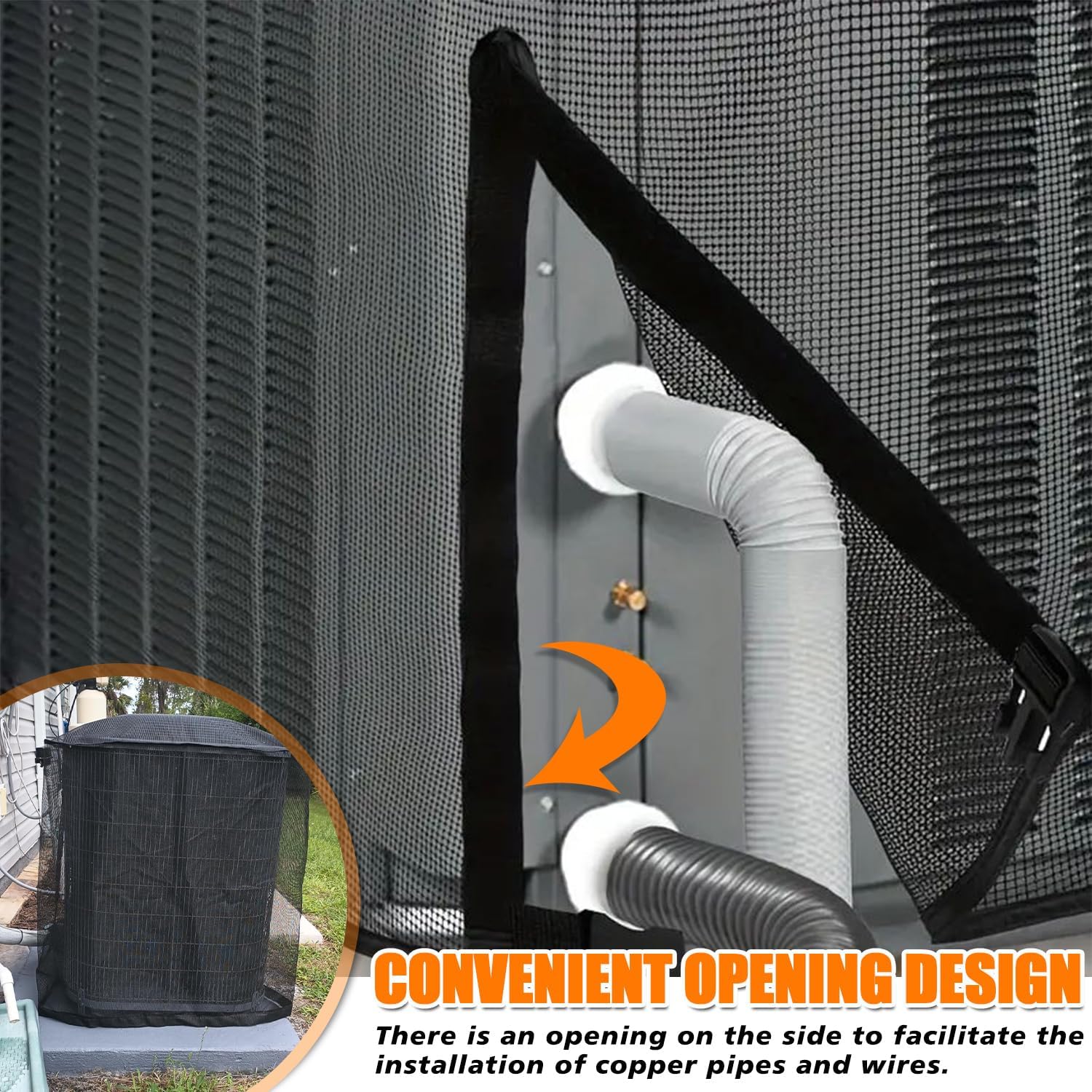 HUAREW Air Conditioner Cover Gives the unit all season protection and extending its life! Why Do You Need An Air Conditioner Cover? Extend Service Life Easy To Clean Keeping Cottonwood/Debris Out AC covers can prevent corrosion caused by the accumulation of debris like rass clippings, leaves, branches, ect. The mesh air conditioner cover provides comprehensive protection and allows air through easily. Features an adjustable drawstring and strap with plastic buckle. Easy to fold up for storage when not in use. Mesh design has fast heat dissipation and good air permeability. There is a slit on the side, for the copper pipe and wires to fit nicely. Different sizes to meet your needs S: 27.5" x 27.5" x 31.5" M: 31.5" x 31.5" x 35.4" L: 35.4" x 35.4" x 39.4"