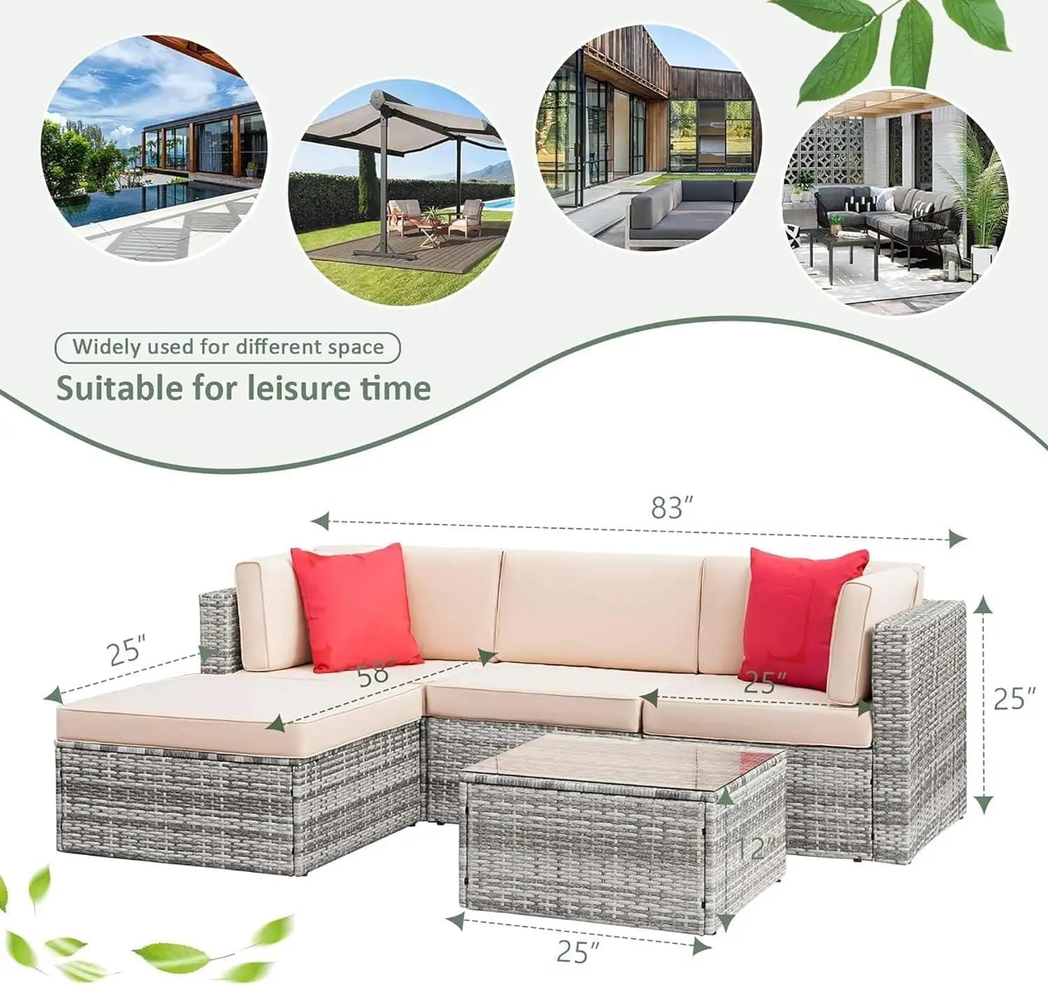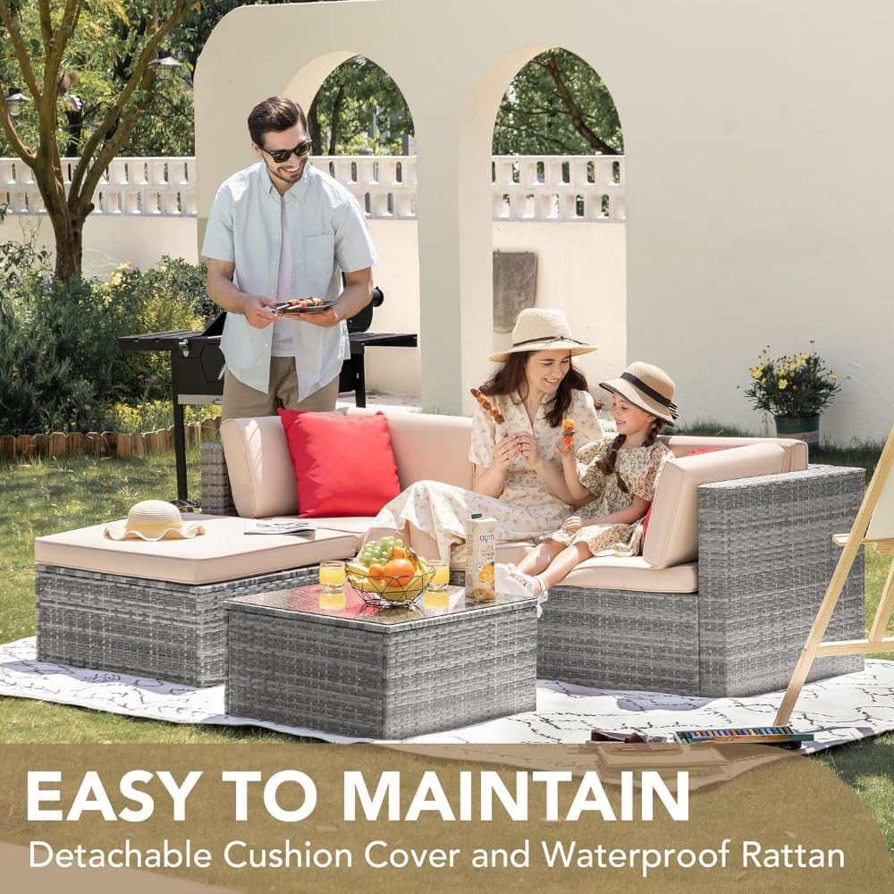 Outdoor Furniture Set, Outdoor Furniture,Patio Conversation Sets,Outdoor Sofa 5 Pieces Set ,Manual Weaving Rattan Wicker with Cushion and Glass Table,patio sofa