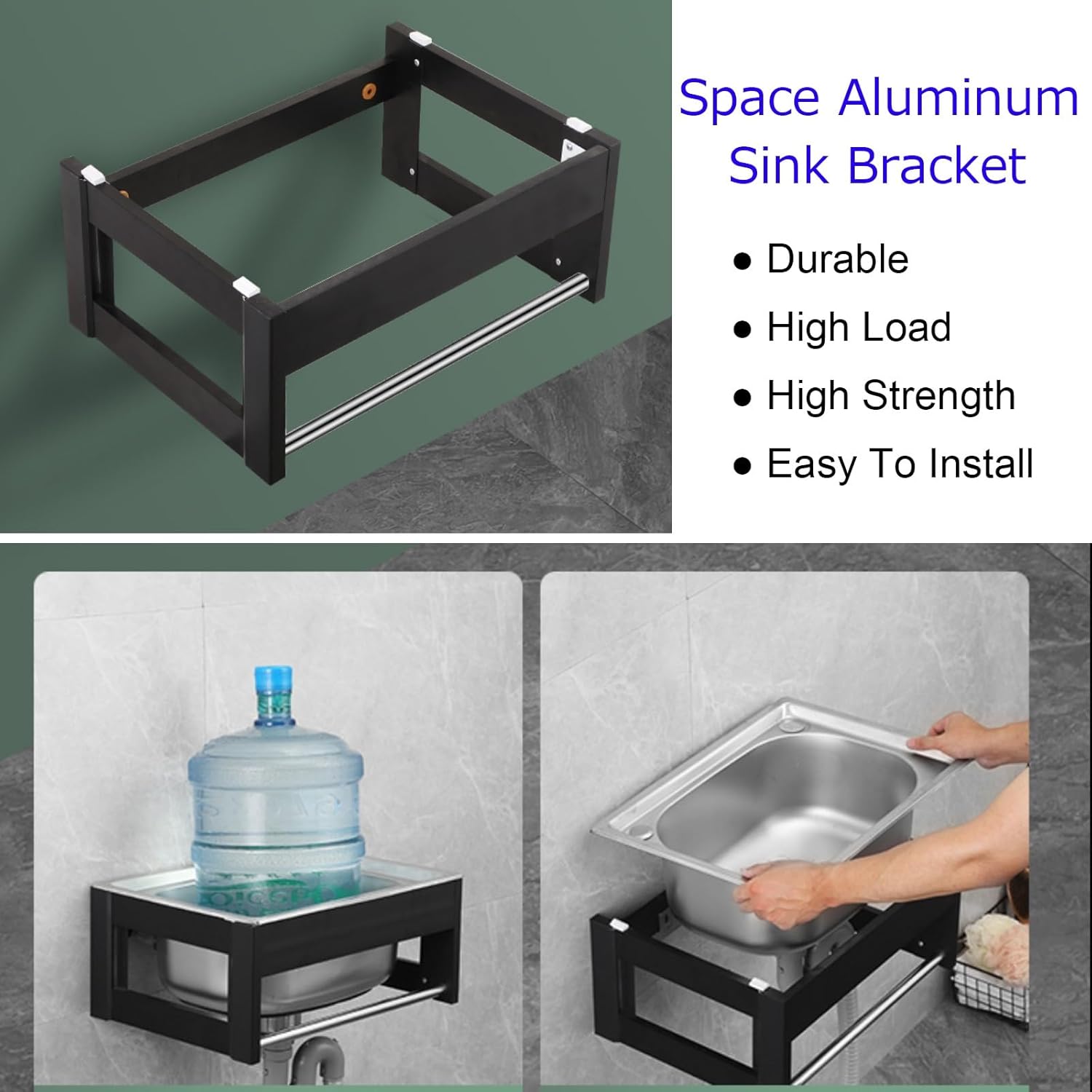 German:Specification:Name: wall sinkMaterial: stainless steel basin + aluminium holderProcess: wire drawing process (non-stick oil)Product size: 38x33x21cm, 48x35x21cm, 50x40x21cm, 53x38x21cm, 58x43x21cm (right corner bowl)Steel sinks stainless steel provide a space-saving solution For efficient food preparation and the washing of It makes a great addition to any small or medium sized bathroom or kitchen. More than one wash Use it as a pet bath to bathe your pets; Use it as an outdoor kitchen sink to clean dirty pots and grills; Suitable for: household laundry, outdoor garden patio, commercial kitchen, yard, hotel, bar, RV, workshop, garage, indoor and outdoorPackage Includes:1 × Sink 1 × Bracket1 × Faucet1 × Water Inlet Hose1 × Dish Drying Rack . Screws Service: If you have any questions about the product, please feel free to contact us. Our customer service team will help you
