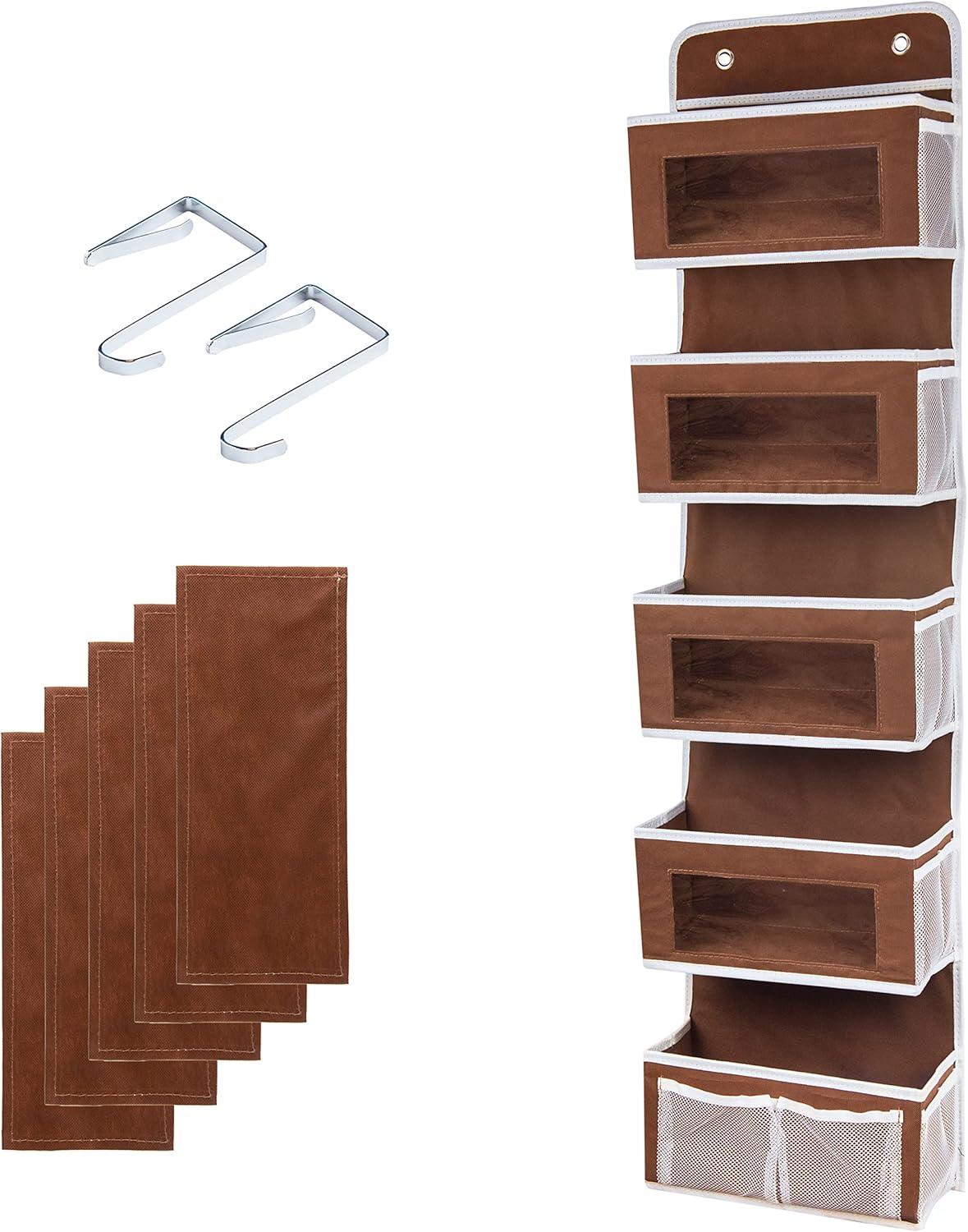 FIALAH 5-Shelf Over the Door Hanging/Pantry Organizer , Wall Mount Storage for Bedroom, day care , Transparent PVC windows Pocket and side mesh pocket for Storage of Cosmetics, Stationery organizer, Baby products, etc.