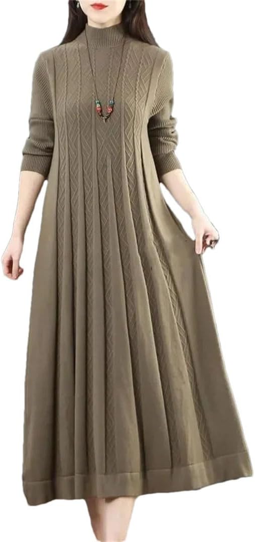 Material:Cotton,WoolClosure Type:PulloverFabric Type:KnittingType:Inclined ShoulderNeckline:O-NeckWaistline:Elastic WaistSleeve Style:RegularDresses Length:Knee-LengthDecoration:NoneSleeve Length(Cm):FullPattern Type:SolidSilhouette:A-LineStyle:Chinese StyleGender:WomenElasticity:Medium StrecthFit Type:Loose
