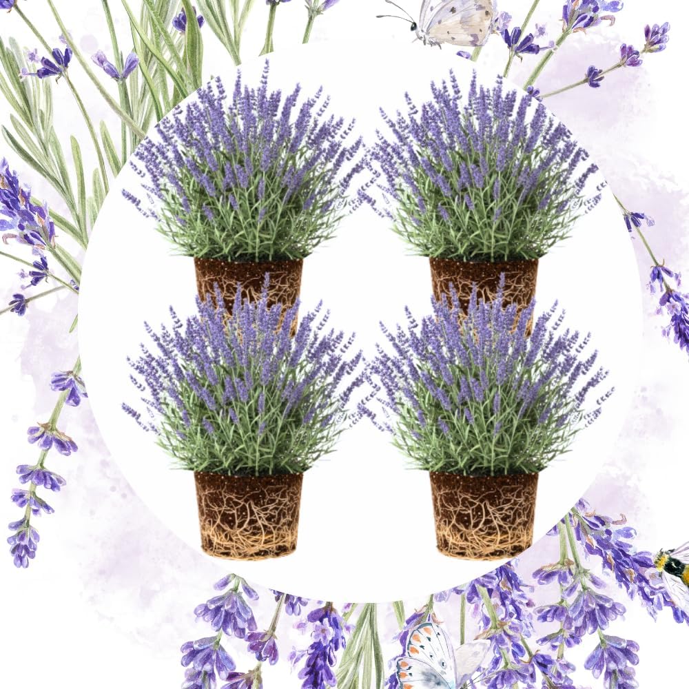 Pack 4 Lavender Plants Live, Lavandula Perennial Plants, 4-8" Height, Fragrant Perennial Flowers, No Pot