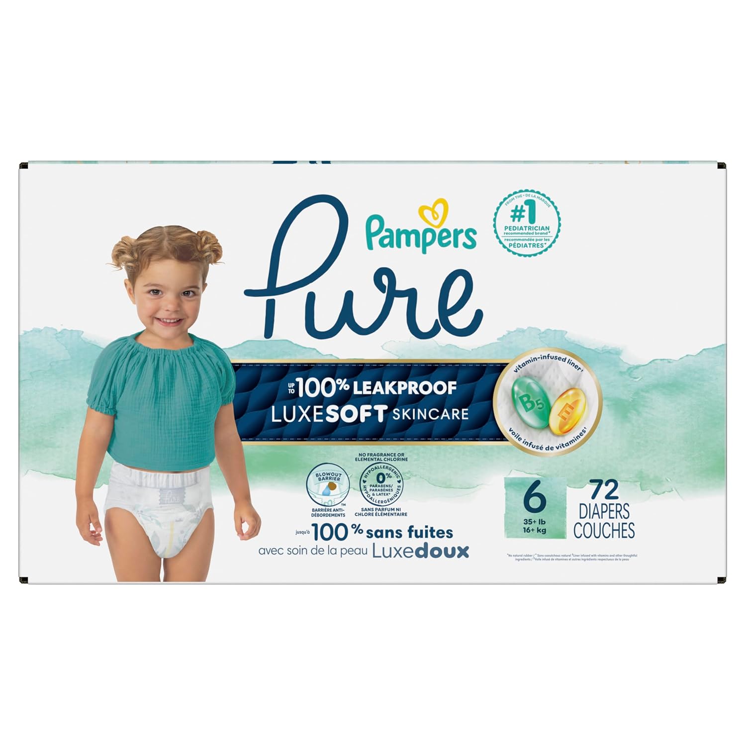 Pure protection. Plant-based. 100% leakproof. The search is over—everything you’ve been waiting for in a diaper, you’ll find with Pampers Pure. Pampers Pure are premium diapers carefully crafted with plant-based ingredients and a shea butter infused liner to help protect baby’s sensitive skin. Pampers Pure diapers are hypoallergenic, no fragrance, no paraben, no latex**, and elemental no chlorine. Featuring improved softness and an absorbent Lockaway Core that stays 2X drier for healthy skin, Pampers Pure diapers are uniquely made to give your baby the utmost care and protection. Our luxury diapers are approved by dermatologists and the Skin Health Alliance. Plus, our designer prints make Pampers Pure just as precious as the babies they are protecting. Discover trusted skin protection from the #1 pediatrician recommended brand, Pampers. All Pampers diapers are assembled in the U.S.A. From domestic and imported materials with zero waste to landfill in our factories. *Liner enriched with plant-based, skin-soothing ingredients. **Natural rubber. Vs. Honest diapers. Baby Care - Global.