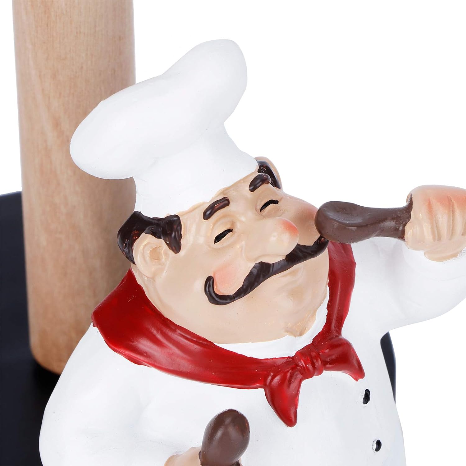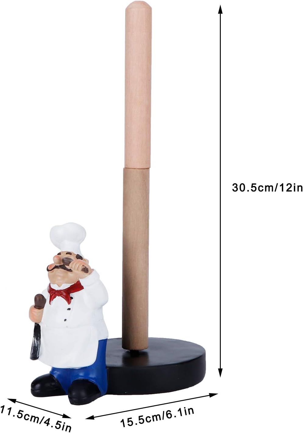 Feature: ✔ Chef Paper Towel Holder: The perfect paper towel rack is perfect for your home, kitchen, cafes, restaurant decoration. ✔ Non‑slip Bottom: Paper towel stand with a heavy base, you can easily place on any table without tipping over. Non‑slip pad at the bottom, which can prevent the paper towel holder from slipping and will not scratch the high‑end finish. ✔ Fashionable Design: This paper towel rack has a stylish design and can be matched with any style of kitchen and countertops! ✔ Material: Made of high quality resin material, environmental protection, fine workmanship, vivid, multi‑functional, beautiful and practical. ✔ Size: 30.5x15.5x11.5cm / 12.0x6.1x4.5in Specification: Item Type: Paper Towel Holder Material: Resin Color: As shown in the picture Assembly Size: Approx. 30.5x15.5x11.5cm / 12.0x6.1x4.5in Weight: Approx.615g/21.7oz Application: Home, kitchen, shop, restaurant decor, RV, camping car and motor room Package List: 1 x Decoration 2 x Accessories Rod Note: 1. Please allow 1‑2in error due to manual measurement. Thanks for your understanding.2. Monitors are not calibrated same, item color displayed in photos may be showing slightly different from the real object. Please take the real one as standard.3. The color of the accessory rod is random due to wood problems.