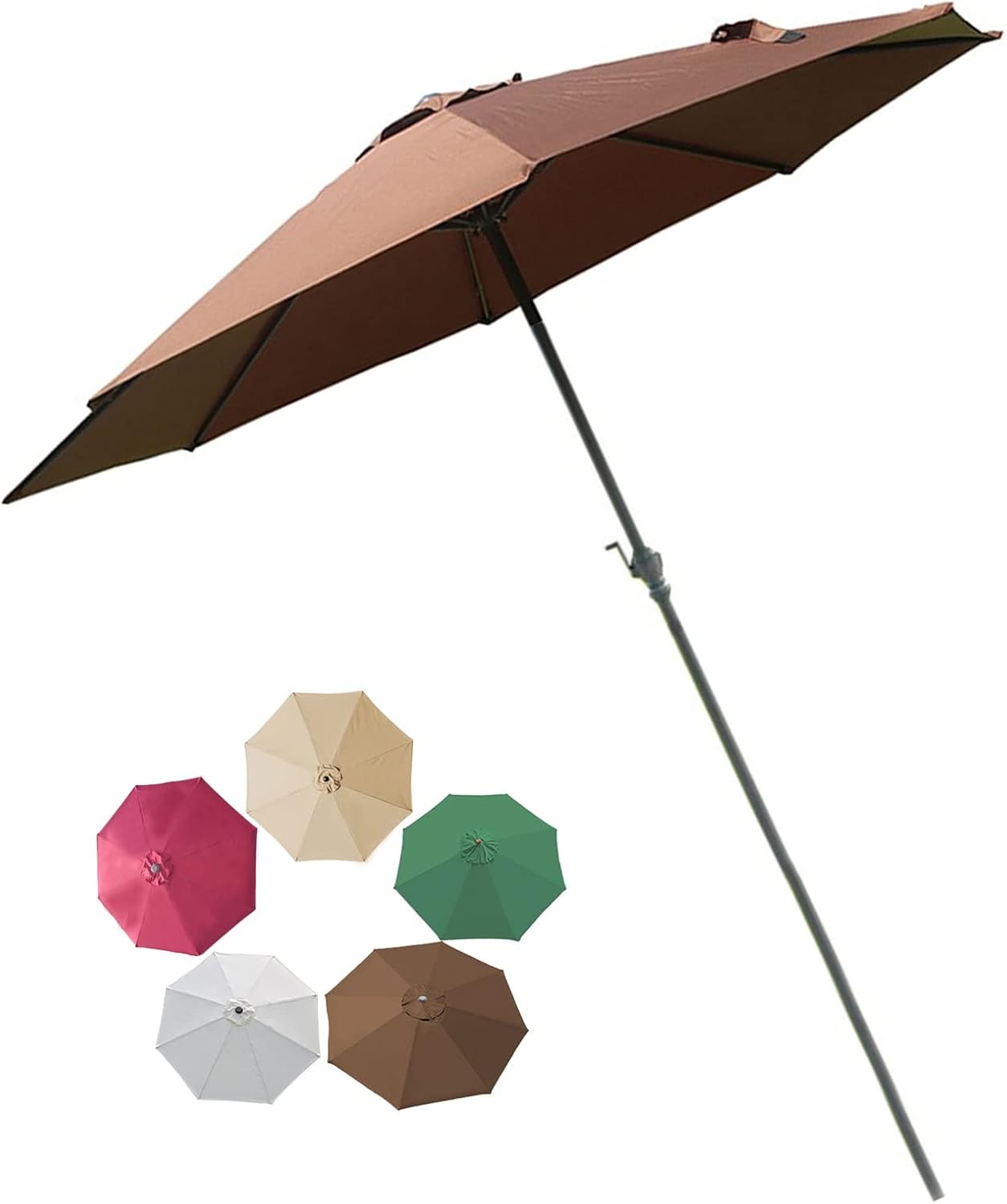 Patio Umbrella Outdoor Table Umbrella with Crank 8 Ribs for Patio Backyard Lawn Garden Outdoor Activities, Portable Sun Shade Umbrella> Product Description:> Name: Iron Umbrella> Umbrella fabric: 200G polyester cloth coating> Frame material: iron frame antirust treatment> Function: sunshade, waterproof> Opening methode: hand crank bearing open> Color: red, green, white, gray, brown> Umbrella bone: 8 bones> Weight: 6-7KG> Size: 270cm*250cm (106inch*98inch) 300cm*250cm (118inch*98inch)> umbrella is made of polyester, and rain resistance is limited to light rain.> Parasol without base> parasol is waterproof, and easy to clean and maintain.> Each product is taken in real scene, due to light and or reasons, re may be some visual deviations.{/p}