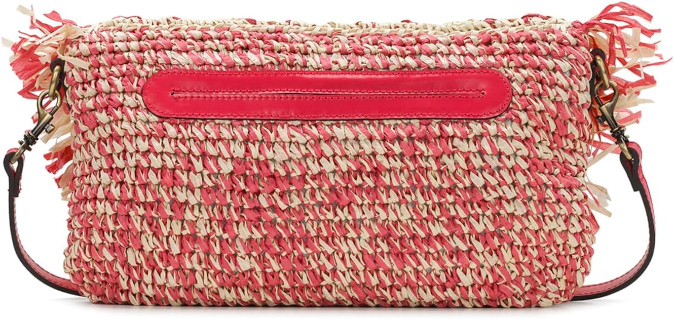 The Patricia Nash Loulia Clutch Crossbody is as pretty as its name. Crafted in straw, accented with full-grain leather trim with burned edge finish, and carried as a clutch, over the shoulder, or across the body, this bag is the style statement you've been searching for. It is designed with signature brushed brass hardware and heavy handcrafted stitching. Its adjustable shoulder strap makes it easy to carry around while the magnetic snap closure provides easy access. This stylish purse has two slip pockets, a zippered pocket on the inside, and a zippered exterior pocket on the back for added storage. Faux suede lining.