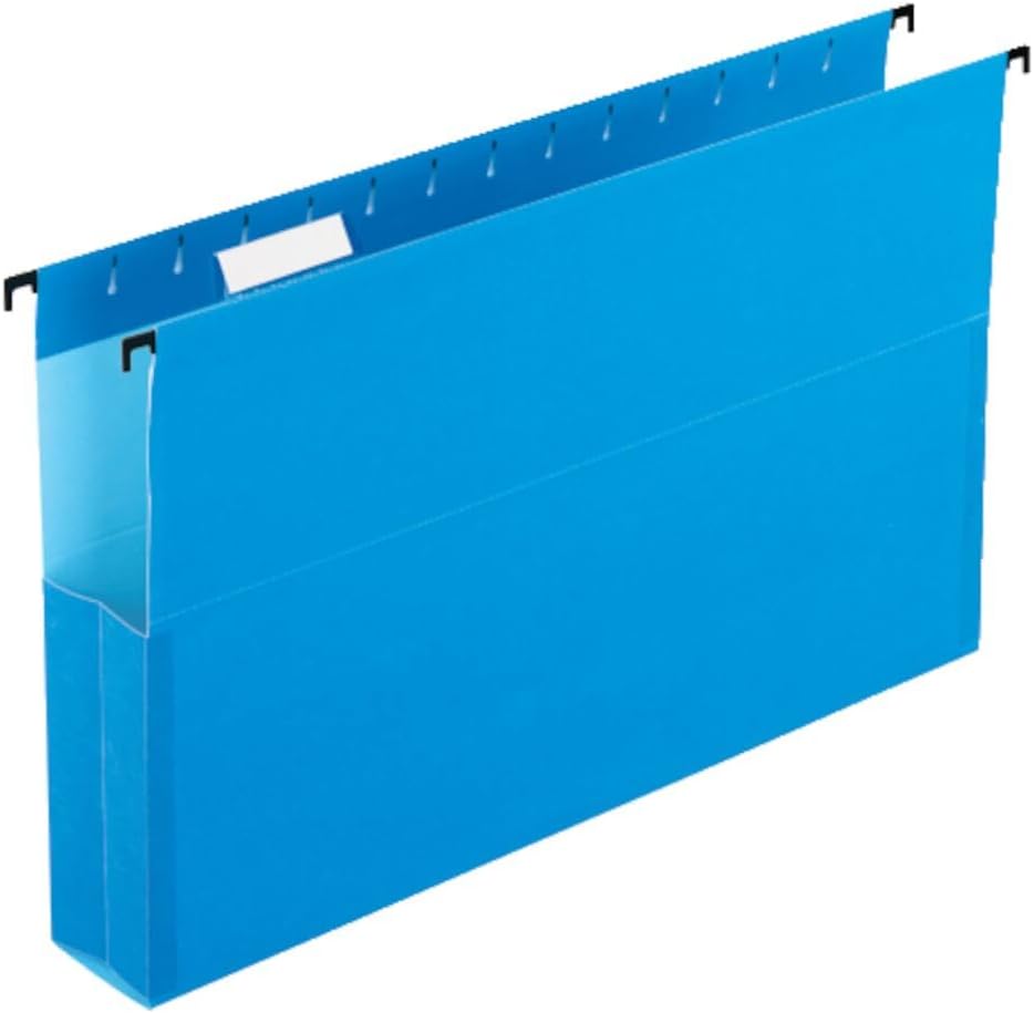 Keep your bulkiest reports contained with Pendaflex SureHook Reinforced Hanging Box Files. Tall, tear-resistant sides keep papers upright and in place. Pressboard inserts expand folders 2" to hold up to 400 sheets. Super-strong rods with longer hooks and tension springs resist buckling so heavy files glide smoothly on the rails. Legal size, blue. 1/5 Cut with 20 clear tabs included. 25 Per box.