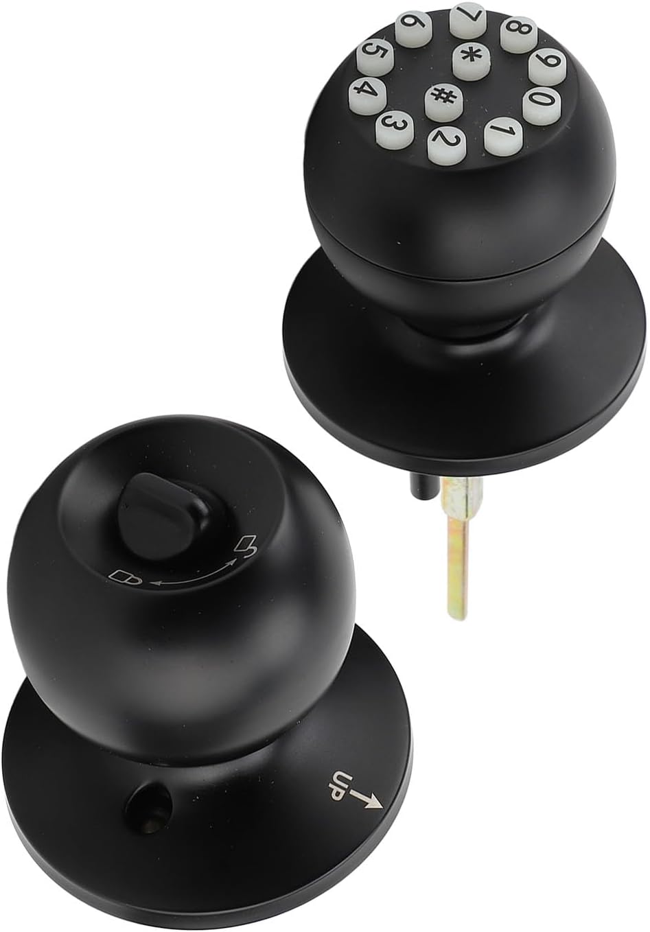 [PREMIUM METAL CONSTRUCTION] Crafted from aluminum alloy and stainless steel this keypad door knob lock offers exceptional durability and reliability. Its robust design ensures long lasting performance making it ideal for standard wooden doors with a thickness of 35 to 55mm. The materials resist and wear providing a secure and stylish solution for your entry needs.[MULTIPLE PASSWORD OPTIONS] This advanced digital door knob lock supports up to 45 sets of passwords including 3 administrator and 42 regular user codes. With a flexible password length of 6 to 8 digits you can customize your security settings to suit your preferences. The intuitive interface makes it easy to manage and update passwords ensuring convenience and peace of mind.[ANTI PEEP FUNCTION] Enhance your security with the dummy password feature which allows you to input random numbers before or after your actual password. This innovative anti peep function ensures that your code remains hidden from prying eyes even in public spaces. The maximum input limit of 16 digits adds an extra layer of protection against unauthorized access.[STYLISH AND FUNCTIONAL DESIGN] The round ball shape of this keypad door knob combines aesthetics with practicality offering a sleek and modern look for any door. It provides multiple unlocking methods including password entry and key access catering to diverse user needs. Whether for homes apartments garages or offices this lock delivers both style and functionality.[EASY INSTALLATION AND VERSATILITY] Designed for hassle setup this electronic door knob lock can be installed quickly without professional help. It comes with all necessary hardware including screws keys and a user manual. Suitable for various door types it is a choice for enhancing security in residential and commercial settings.Spec:Item Type: Keypad Door Knob LockMaterial: Aluminum Alloy, Stainless SteelWeight: Approx. 678.00g/23.92ozCapacity: 45 Sets (3