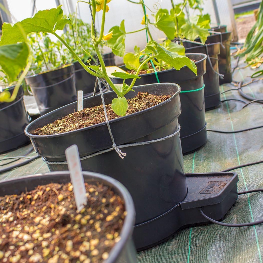 Product Description PLANT!T GoGro is the new, ingenious and versatile selection of self-watering pot systems that require minimal upkeep and are designed for maximum yields. GoGro’s patented valve controls water flow into the tray with capillary action keeping your growing media hydrated so that the plants are always watered. This system requires no batteries or electricity, relying only on gravity. It requires little upkeep, making it perfect for busy families, professionals or when you go away on holiday and want to ensure that your plants and flowers are kept well-fed. The GoGro valve will regulate the amount of water supplied to the plant from a central nutrient tank so that just the right amount of nutrient is supplied, giving you peace of mind. It is quite simply the best self-watering pot system on the market. The PLANT!T GoGro Essential 2 Plant system contains a 50L reservoir, 2 x 15L modules (15L buckets, GoGro valves) and connection kit, 2x 1L bags of expanded clay pebbles as well as fully illustrated instructions. The PLANT!T GoGro Essential 2 Plant 15L Pots system is an automated irrigation system that is cleverly designed to keep your plants perfectly watered (and fed) with little maintenance and no wasted water. It is suitable for all gardening styles including organic and hydroponic growing. You can lay out your growing system in many different ways. This flexibility of layout allows you to shape your growing system around your flower bed or green house, so you can fit it in where you like whether that is for a pretty arrangement to display your plants and flowers or to fit it in amongst other items. Your GoGro system can be expanded up to a maximum of 8 plants: the GoGro Expansion 2 Plant kit (sold separately) allows you to expand your set up 2 plants at a time with ease. Box Contains 1x 50 litre reservoir2x 15 litre pots2 x 1 litre bags of expanded clay pebbles2 x GoGro Valves2 x GoGro Trays and Lids all necessary fittings, connectorsFull instructions