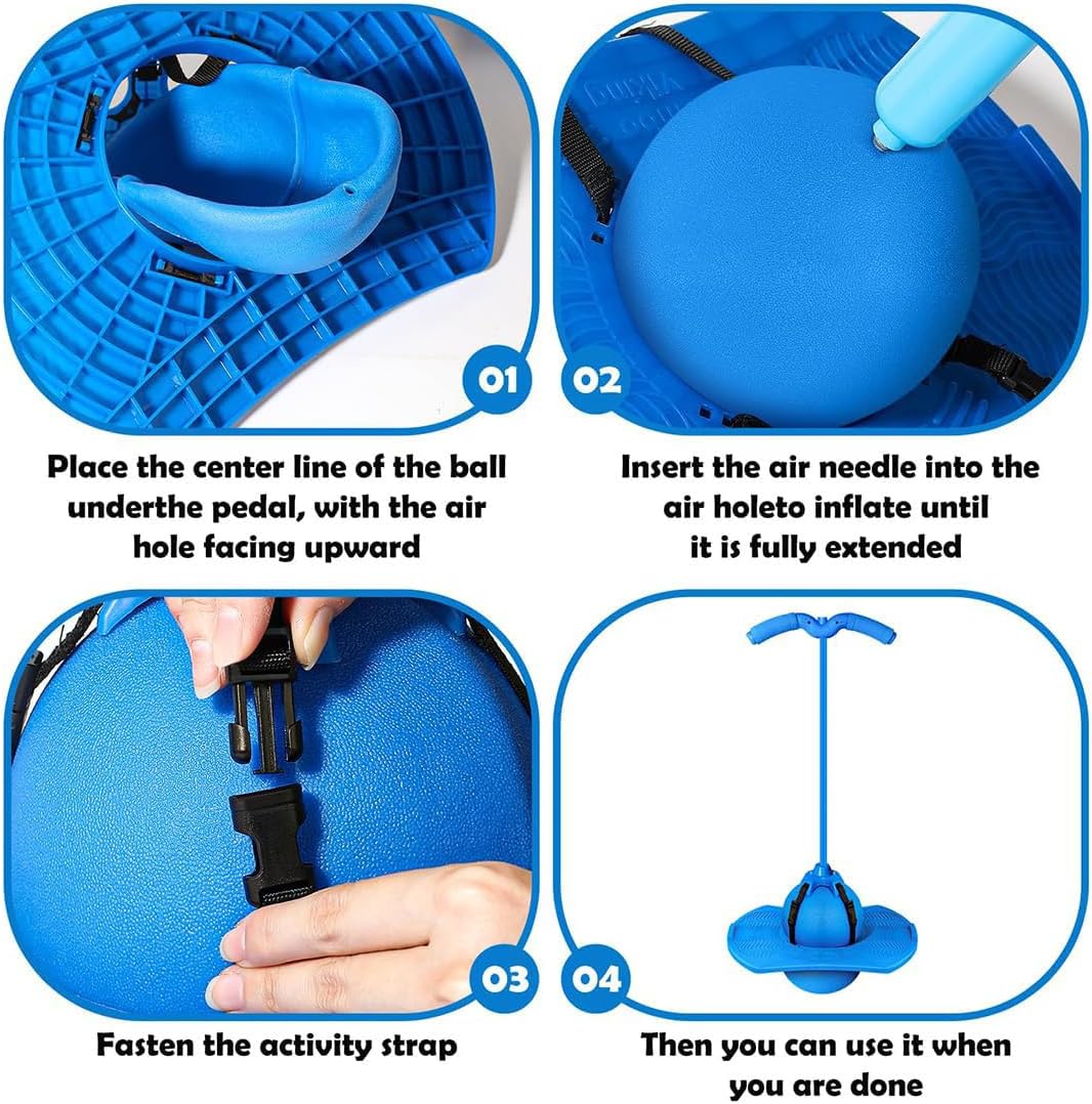 Jump, balance & build confidence Trick ball with high elasticity for more body balance and lots of fun. Easy to carry, ideal for outdoor activities and birthday parties, providing hours of fun for all ages Why will your child love our pogo jumping ball? 1. Promotes endurance: improves balance, a great training toy for all ages 2. Fun & Fitness: Durable PVC, Versatile (Bouncing / Jumping) 3. Detachable design: easy to store and carry, safe jumping 4. Multi-purpose: for indoor and outdoor use (park, gym, garden) 5. IDEAL GIFT: Perfect for kids birthday parties and other festivals Specifications: Product name: jumper ball. Product size: approx. 38 x 29 x 29 cm. Product colours: red, pink, yellow, green, blue, purple. Product material: PVC Suitable age: from 3 years Maximum load: 300 kg. Uses: outdoor, indoor, office Recommended for: beginners/toddlers/people with Package includes: 1 x Pogo jumping ball for children and adults. 1 x air pump (colours and designs random). 1 x air needle. 1 x gift bag. 1 x knee brace. Features: Thickened and soft PVC for high stability Application: Place on the pedals. With both feet and the movement of your feet, the rubber ball puts your body in an up and down movement. Note: 1.Due to the light and screen difference, the item's color may be slightly different from the pictures. 2. Please allow slight deviation due to manual measurement. Adult supervision is recommended for small children. 4. Please use on a flat, free surface and away from sharp objects. Warning: No