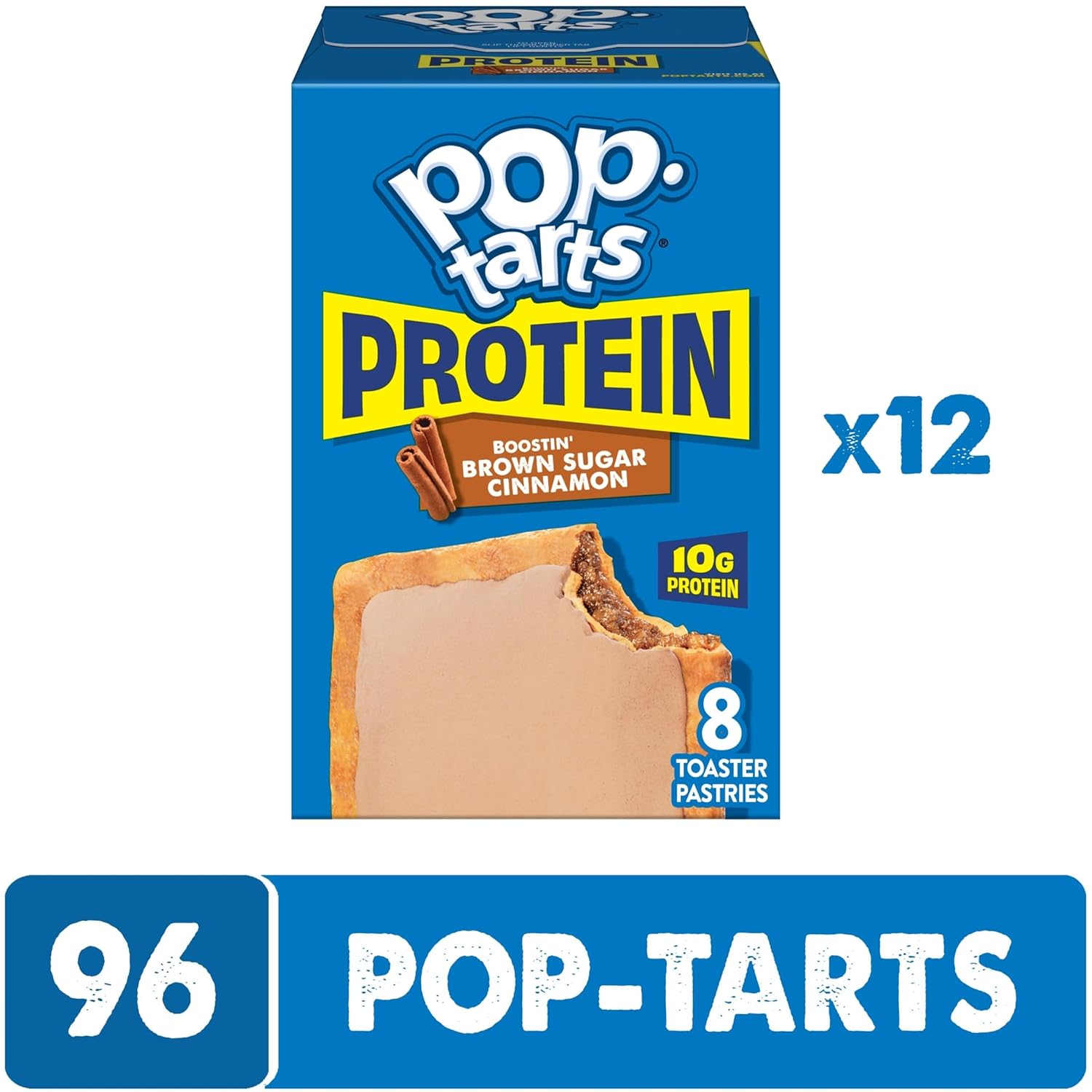 Same flavor, great taste - leveled up! Power up your snack time with Pop-Tarts Protein Boostin' Brown Sugar Cinnamon toaster pastries. These craveworthy Pop-Tarts pastries deliver the classic flavor you love with 10g of protein per serving (11% daily value). This sweet option is packed with gooey brown sugar and cinnamon-flavored filling, wrapped in a golden pastry crust, and topped with frosting. They're perfect anytime you're looking for options for the whole family on the go. Whether it's a quick part of breakfast heading out the door or a mid-morning snacking option, they help fuel your day. Enjoy them perfectly toasted for a warm, crispy crust, microwaved for a convenient protein snack choice, or straight from the pouch when it's on the go snack time. Pack into a lunch box for a tasty school snacks option, or stock your office pantry for afternoon cravings. No prep, no mess. Try Pop-Tarts Protein Boostin' Brown Sugar Cinnamon for a Crazy Good way to get protein without sacrificing taste.
