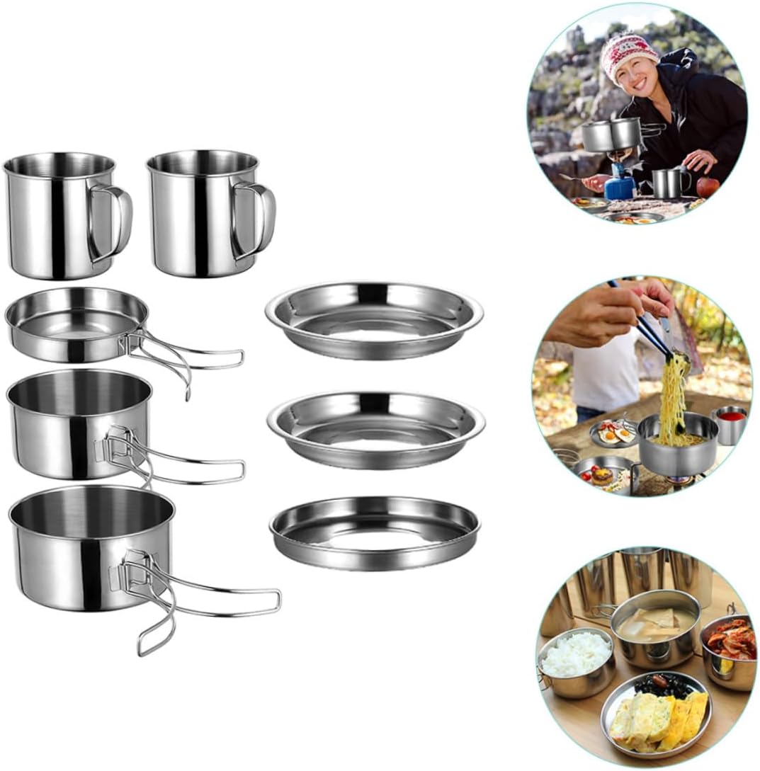 Package List 1 Pan 1 x Middle Pan 1 x Frying Pan 2 x Food Plates 2 x Cups 1 x Lid Features - Color: Silver camping pans - Size(Lid): About 13.00x1.70 cm/5.12x0.67 inch camping cooking pan - Material: Stainless Steel portable cookware kit - Size(Food Plate): About 13.50x2.20 cm/5.31x0.87 inch portable cook combinations - Size(Large Pan): About 25.40X14.40X6.60cm/9.98X5.66X2.59inch camping cookware - Size(Middle Pan): About 12.30x6.50 cm/4.84x2.56 inch outdoor camping cookware - Size(Frying Pan): About 14.80x3.10 cm/5.83x1.22 inch camping pot - Size(Cup): About 7.00x6.50 cm/2.76x2.56 inch camping accessories - Designed to pack up small and take up little room, so that you barely feel the weight within the pack on your back outdoor cooking tool. - The bottom is smooth and easy to use, you can use it with confidence camping cooking set. - This camping cookware is space-saving and compact. Compact and lightweight, convenient to carry camping supplies. - The camping cookware comes equipped with many kitchen essentials outdoor cooking supplies. - This product is exquisitely crafted and , and is widely loved by people camping cooking pan kit.Goods Informationcamping supplies Lightweight and , for camping backpacking, hiking, picnic and other outdoor activities.travel picnic cookware It is so portable that you can take out with you and cook some food or tea anytime and anywhere.picnic cookware This item is a cookware for outdoor which is made of materials for and long time use