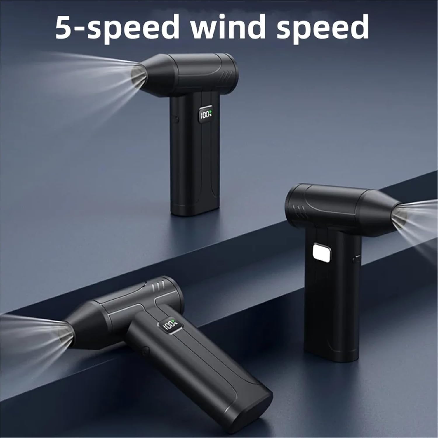 Snow BlowersFeatures: components:This mini jet fan adopts super imported high-speed bearings, a CNC metal turbine, a brushless motor, and a hand wound motor.Super strong wind speed:The machine has four shark gills that actively dissipate heat through air vents, effectively expelling air from the cabin, providing protection for long-lasting operation.Portable and compact:With its mini size and lightweight design, it is very convenient to carry. The compact body of the frenzy fan makes it easy to carry and easy to use outside.Long battery life wireless design:His powerful hair dryer is equipped with built-in capacity 6000mah batteries, which can achieve wireless operation without external power supply. Enjoy the convenience of long-lasting use. structure:Pocket style: Wireless design, fashionable and exquisite. The TYPE-C charging interface supports 10W fast charging, with a compact size that is easier to operate than a single hand, ensuring fast and efficient charging.Easy to use operation:Knob stepless speed regulationThe user-friendly design of portable fans ensures easy functionality. In addition, the charging board also has safe and reliable charging protection and overheating protection functions. The internal brushless motor can achieve high speeds of up to 200000 RPM (revolutions per minute).Wide Usage:Air cushion blowing and suction, computer equipment cleaning, industrial dust blowing, charcoal burning to support combustion, car blowing and snow blowing, film studio shooting and wind making, drying pets, and many other uses.Package Included:1* Jet Fan1*Type-c cableNote:1. The real color of the item may be slightly different from the pictures shown on website caused by many factors such as brightness of your monitor and light brightness.2. Please allow slight manual measurement deviation for the data.==========High-concerned chemical : NoneBattery Included : YesModel Number : 5 Speed Adjustable jet fan blowerUse : Home DIYPressure : Medium PressureMotor : Brushless