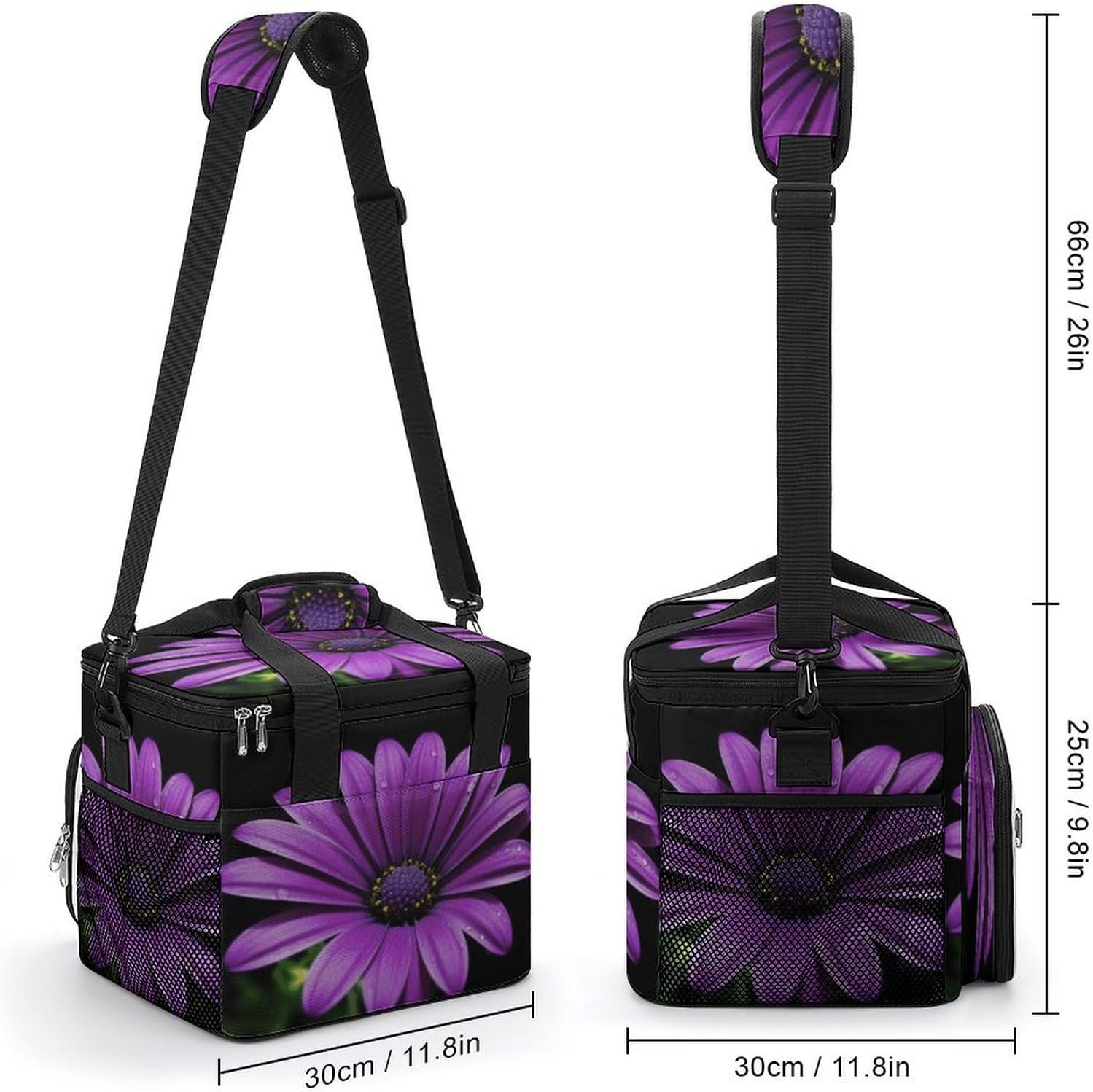 When you're looking for a reliable way to keep your food and drinks fresh while on the move, our Purple Daisy insulated cooler tote is the perfect solution. Made from high-density Oxford cloth with an upgraded aluminum foil lining, it offers superior insulation that maintains the temperature of your items for hours. The leakproof design ensures no messy spills, and the sturdy construction means it can handle the rigors of daily use, whether you're commuting to work or heading out for a weekend camping trip.The 22.5L large capacity provides ample space for all your essentials, from sandwiches and salads to cans of soda and bottles of water. The comfortable 66cm straps make it easy to carry, and the compact vertical design doesn't take up unnecessary space in your car or backpack. Whether you're packing a meal for the office, preparing for a family picnic, or stocking up on groceries, this cooler bag has you covered.Forget about flimsy coolers that fall apart after a few uses or fail to keep your food fresh. Our reusable cooler tote combines practicality, durability and style in one package. Its neutral design works for everyone, and its versatility makes it a must-have accessory for anyone with an active lifestyle. Invest in a cooler bag that meets all your needs and simplifies your on-the-go eating experience. Lightweight Cooler Bags Oxford Cloth Cooler Bags Ice Packs Reinforced Handle Ice Chest Cooler Bag Tote Cooler Bag Versatile Cooler Bags Portable Insulated Cooling Everyday Cooler