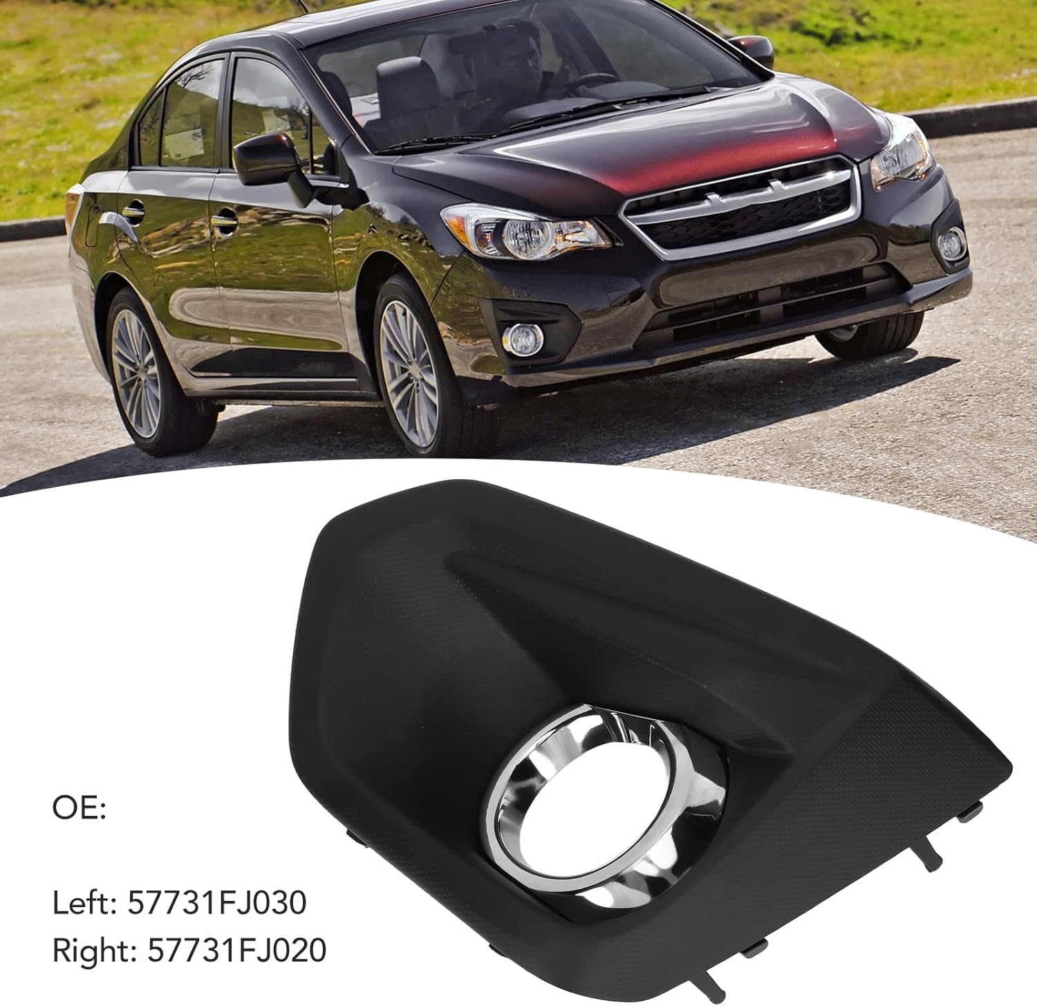 1. Applicable Model: This fog light bezel is replacement for Impreza Sedan and Wagon 2012‑2014, and replacement for 2012-2014.2. Powerful Function: The high end front fog lamp bezels can effectively your fog lights from damaging and scratching.3. High Safety Performance: Mount them on and fix them properly, they are extremely firm, not easy to loosen, and has strong seismic .4. Stylish Appearance: The front bumper is perfectly matched with the fog lamp frame, and the appearance is harmonious and elegant.5. Easy Installation: No modification is required, install in the original car hole. This item is a replacement part, please remove the original covers before fix them.Specification:Item Type: Fog Light BezelMaterial: PP, ABSColor: BlackProcess: Electroplating, Chrome platingInstallation Position: Front left and front rightInstallation Type: Direct installationApplication: Replace the dilapidated damaged original car grille, effectively improve the car exterior texture, improve the car , with good function, fog lights from damage.Fitment:Replacement for Impreza Sedan and Wagon 2012-2014Replacement for 2012-2014packing list:1 x Fog Light BezelNote:1. Please double check the part number of your item, matching information is for reference only.2. If you are unsure of the item, please us before buying to avoid unnecessary return, thanks!