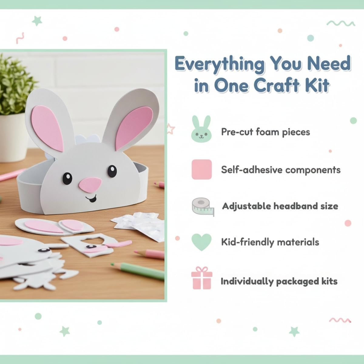 Bring Easter fun to life with this Rabbit Headband Craft Kit! Kids will love creating their own bunny headbands using colorful, self-adhesive foam pieces that make crafting easy and mess-free. Perfect for classrooms, Easter parties, and springtime activities, this kit encourages creativity while helping develop fine motor skills. Each set makes 12 adorable bunny headbands, pre-packaged for individual use and ready to assemble with simple instructions. A festive and engaging craft that kids will be proud to wear and share.