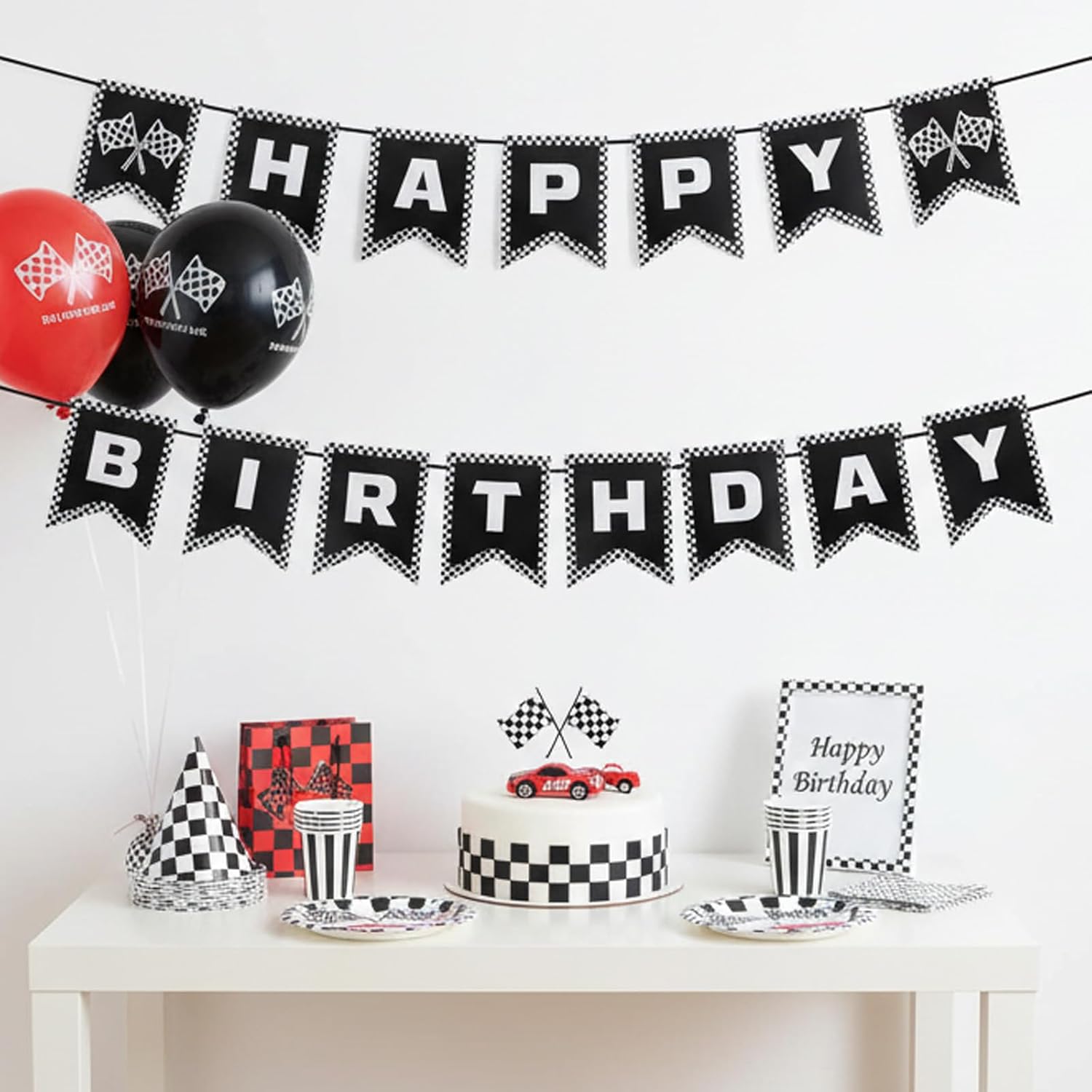 Packing List: 1 Set "HAPPY BIRTHDAY" Banner Letters, 1 Roll of Ribbon, 1 Pcs Thread NeedleSpecification:Size: 15cm x 2cmColor: Black and WhiteMaterial: Paper
