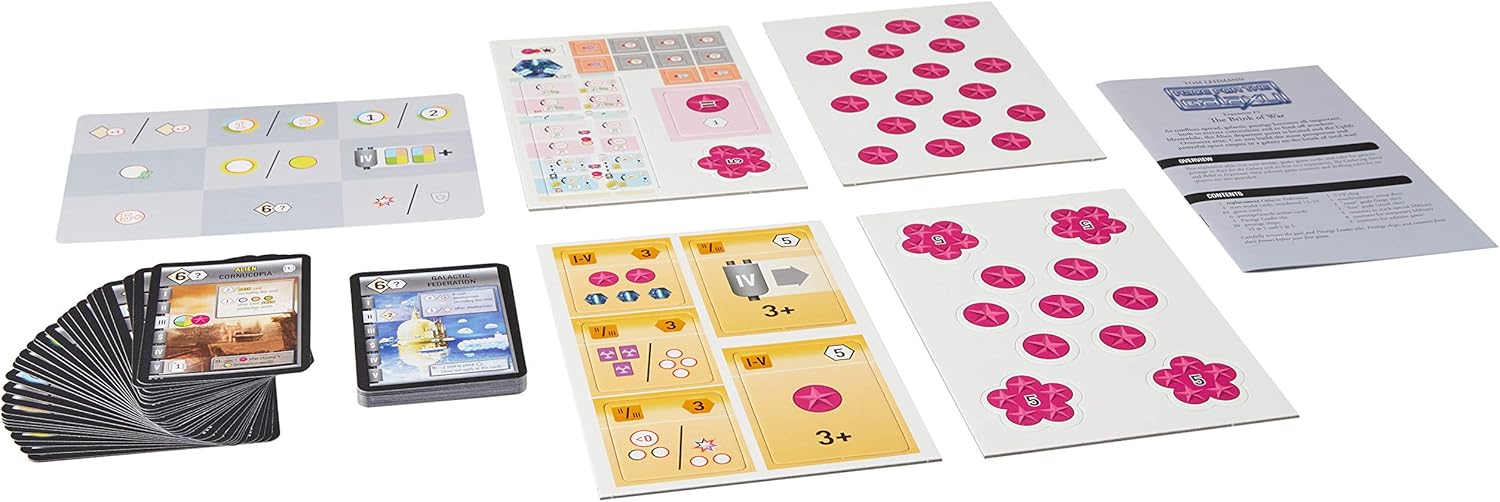 Product Description As conflicts spread, galactic prestige becomes all-important, both to extract concessions and to fend off attackers. Meanwhile, the Alien departure point is located and the Uplift Overseers arise. Can you build the most prosperous and powerful space empire in a galaxy on the brink of total war? This expansion adds new start worlds, goals, game cards, and rules for galactic prestige to Race for the Galaxy and its first two expansions, The Gathering Storm and Rebel Vs. Imperium. New solitaire game counters and drafting rules for six players are also provided. From the Manufacturer As conflicts spread, galactic prestige becomes all-important, both to extract concessions and to fend off attackers. Meanwhile, the Alien departure point is located and the Uplift Overseers arise. Can you build the most prosperous and powerful space empire in a galaxy on the brink of total war? This expansion adds new start worlds, goals, game cards, and rules for galactic prestige to Race for the Galaxy and its first two expansions, The Gathering Storm and Rebel Vs. Imperium. New solitaire game counters and drafting rules for six players are also provided.