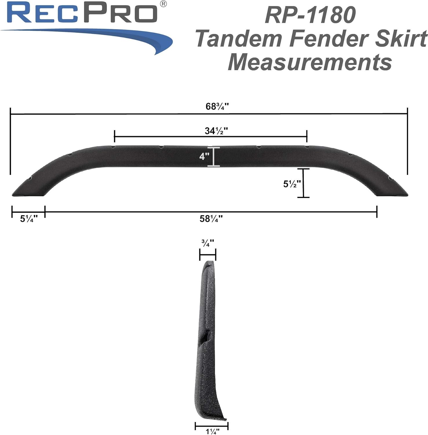Details: Dimensions: 68 3/4"W x 9 1/2"H (see dimensional drawing for exact measurements) Color: Black Material: ABS Plastic Flared Minimal style. similar with Puma Textured to minimize damage and dings Replacement for original fender skirt Durable Made in America *We are unable to provide specific vehicle fitments*