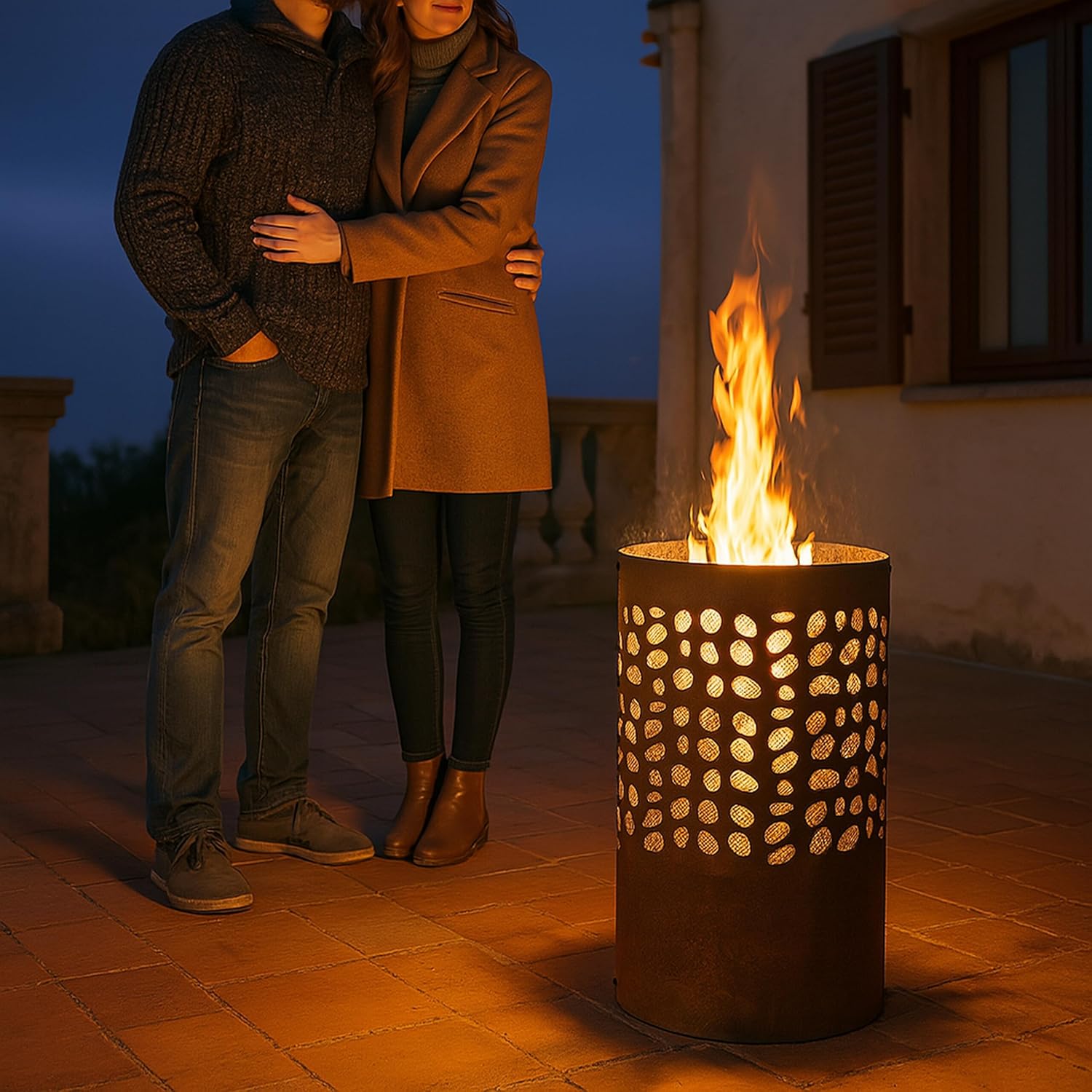Light a cosy campfire in your garden and spend relaxing hours with family or friends in front of the crackling fireplace. The enclosed poker and wooden grate ensure a blazing fire, while the mesh grate acts as a spark screen and protects the surroundings from flying sparks. The decorative stone pattern provides an elegant play of light from the flames and makes the fire basket a great eye-catcher even during the day.Note: Be careful when unpacking - rust dust in the packaging. Set up in an insensitive place.Fire Basket in Detail- Total dimensions H x Ø: approx. 60 x 37 cm- Ground clearence: approx 15 cm- Length of poker: approx. 41 cm- Fire grate: approx. 33 cm- Weight: approx. 9.4 kg- Material: Corten steel (1.6 mm)- Colour: Rusty brownRobust Fire Barrel with Spark Protection- Sturdy design for use in the garden or on the terrace- Protection of the ground thanks to raised bottom- Protection of the surroundings thanks to the spark guard- Poker and fire grate for air circulation- Subtle decoration with stone pattern and rusty metal look- Corten steel is durable and robust against the elementsSafety Instructions- Use outdoors only, not on wooden floors- Only for burning logs and coal (no leaves or other materials)- Keep children and pets away- Basket gets hot, do not touch with bare hands- Never leave fire unattended- Do not use near flammable objects or materials- Check local fire regulations in advanceIncluded in Delivery- 1x fire basket (disassembled)- 1x fire grate- 1x poker- With assembly materials and instructions- Decorative items are not included