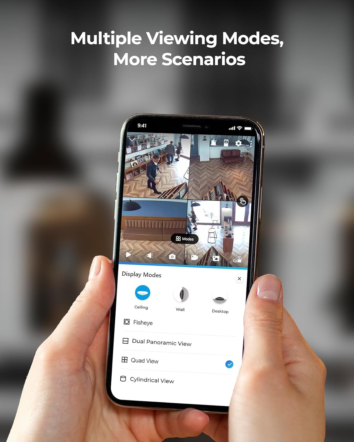 REOLINK Indoor Fisheye Camera FE-W Bundle with 1 pcs 256GB SD Card, 2K+ 6MP 360° Panorama, 2.4/5GHz WiFi Security Camera, Person Motion Detection, 2-Way Audio, Multiple Panoramic Display Views