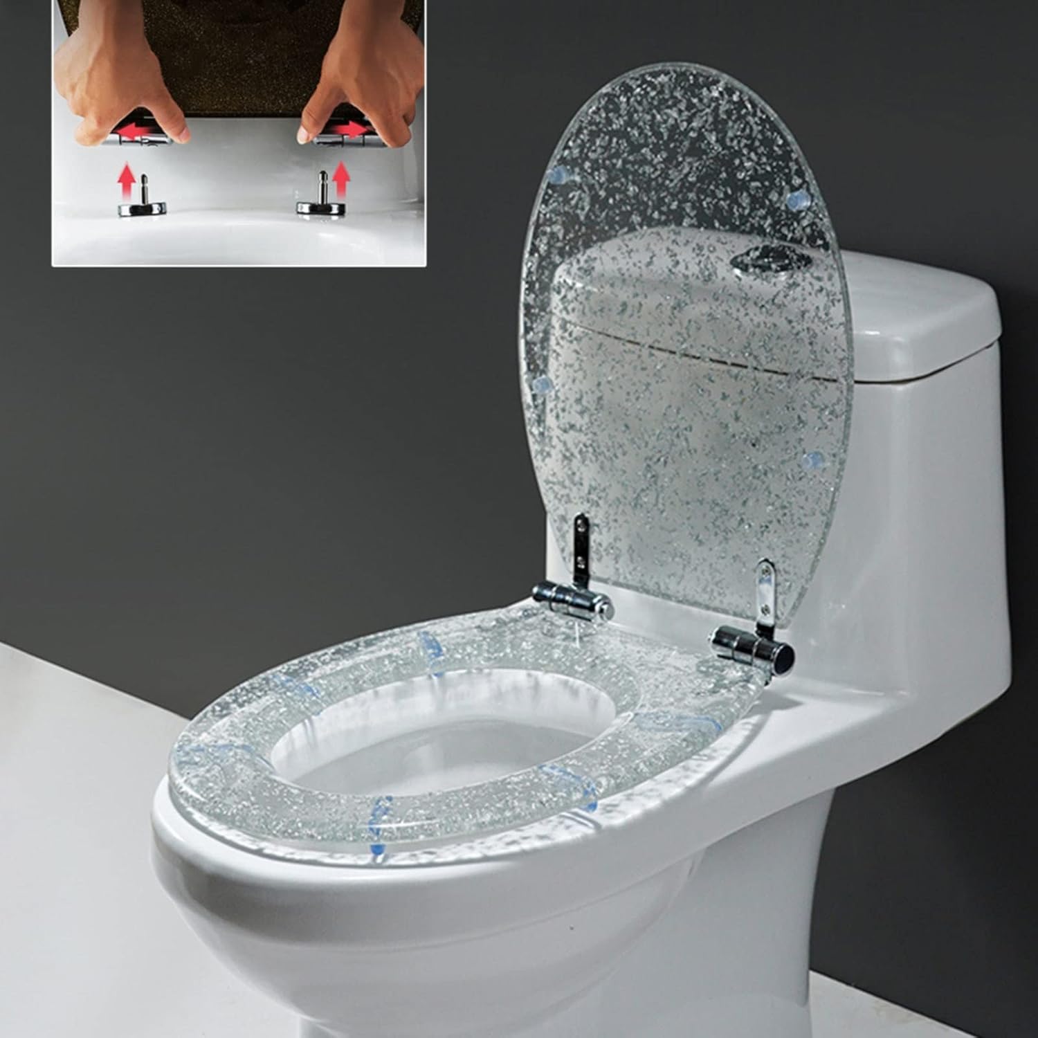 The flashing style toilet seat is bright in color and distinctive. Slow and quiet release, easy to disassemble and install, easy to clean and wipe, ergonomic design, bring you comfortable enjoyment. Our toilet lid is O-shaped, but for U-shaped and V-shaped toilets of the right size, they are universal. Product name: toilet seat Material: Resin Load capacity: 300 lbs / 150 kg Package content: toilet seat×1, accessory set×1 Size: Round (O-shaped): length 42 cm/16.5 inches, width 36 cm / 14.2 inches Hole distance: 13-20 cm/5.1-7.9 inches Note: Manual measurement has an error of 1-3mm, please understand. Due to the difference between the screen and the light and the individual understanding of the color, the color will have a certain error, but we that the style you receive is consistent with the picture. We are always committed to providing you with quality service. If you have any questions, please feel free to send us an email, we will reply you within 24 hours and provide you with the best service to ensure 100 Percent satisfaction. If you are satisfied with our products, please remember to provide us with a five-star evaluation. Thank you!