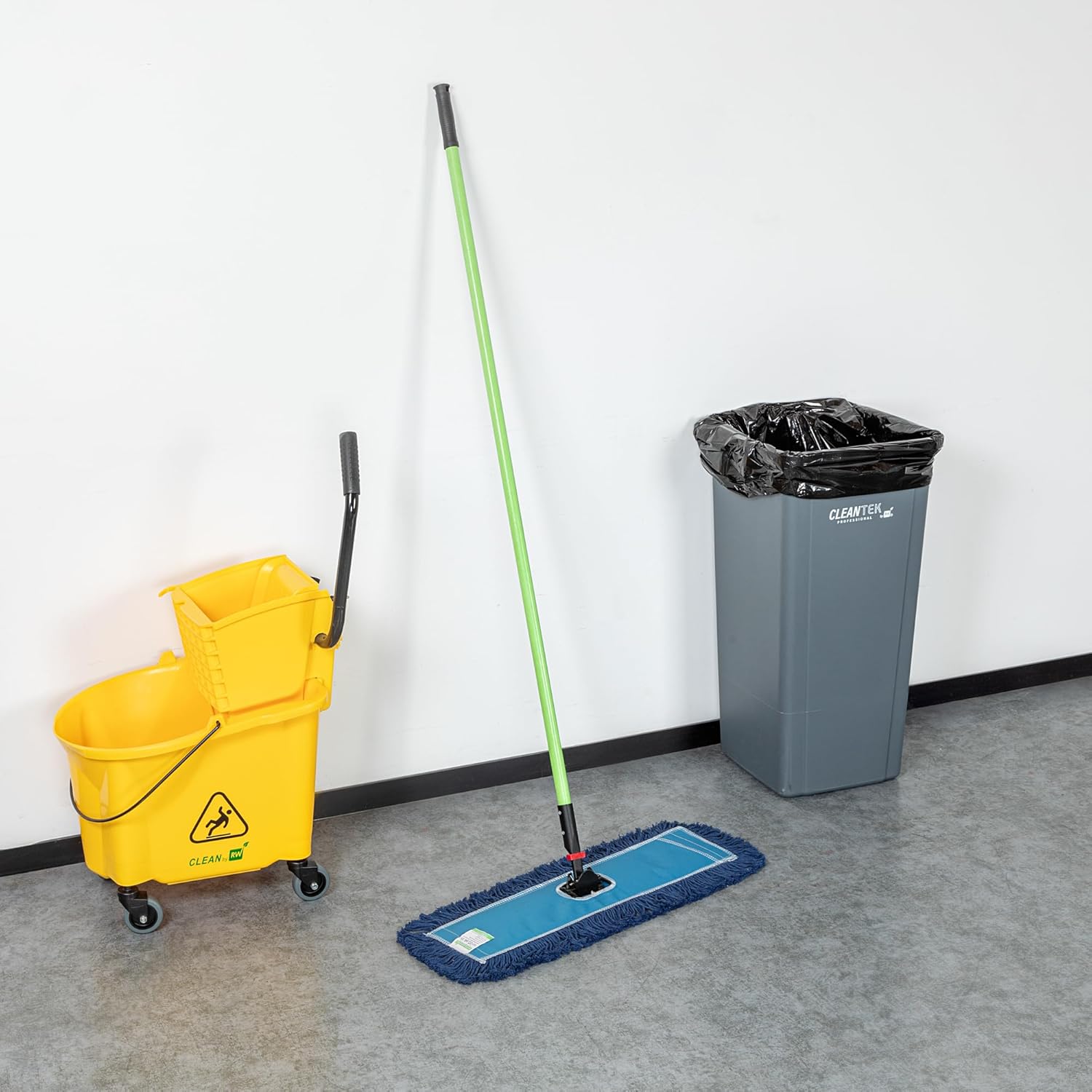 Efficiently enhance the cleanliness of your establishment with our Clean Tek Professional Blue Cotton-Poly Blend Dust / Dry Mop. Perfect for tackling even the toughest cleaning tasks, this set includes a dusting head, handle, and frame to ensure every corner has no dust. The 64-inch handle on this floor duster provides an extended reach, allowing for effortless cleaning of large areas and hard-to-reach spots without the need for bending. This dry mop, crafted from a durable cotton-poly blend, effectively captures dust and fine particles, making it ideal for high-traffic areas. Designed for longevity, the iron frame of this commercial dust mop minimizes bending and warping, ensuring consistent performance with frequent use. Each machine washable mop head is designed for easy cleaning and reuse, providing a convenient solution for maintaining cleanliness. Measuring 24.02 inches in length by 5 inches in width by 64.96 inches in height, this floor dust mop is perfectly sized for maintaining pristine floors in any foodservice environment. Sold in a 1 count box.