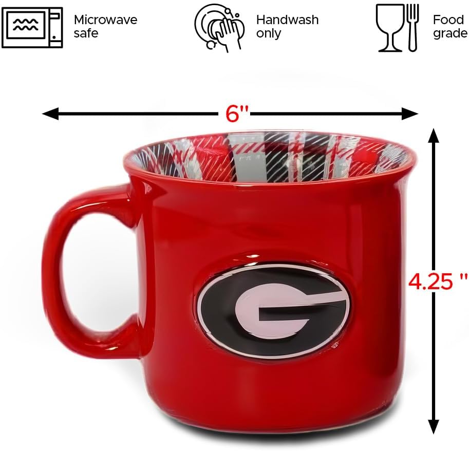 Celebrate Georgia Bulldogs pride with this extra-large 23oz ceramic relief mug. The raised 3D team logo paired with bold official colors makes it a standout piece for any fan. Designed for durability, the mug comfortably holds plenty of coffee, tea, or cocoa, perfect for home, office, or tailgate use. Individually boxed for gifting, this microwave-safe mug is handwash recommended to maintain its vibrant colors and detailed relief design.