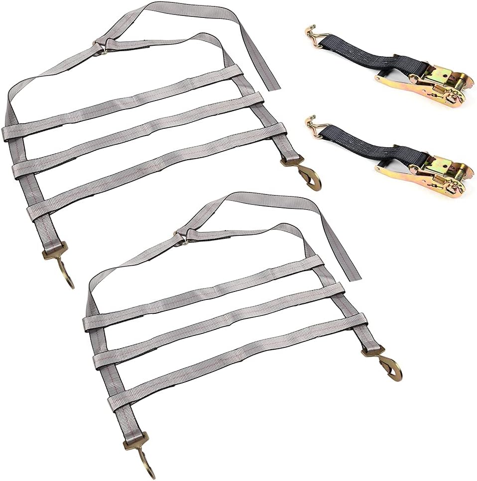 ROADFAR 2pcs Car Dolly Tie Down Kit Wheel Tire Basket Strap Auto Straps & 2pcs Ratchet - Easy Install
