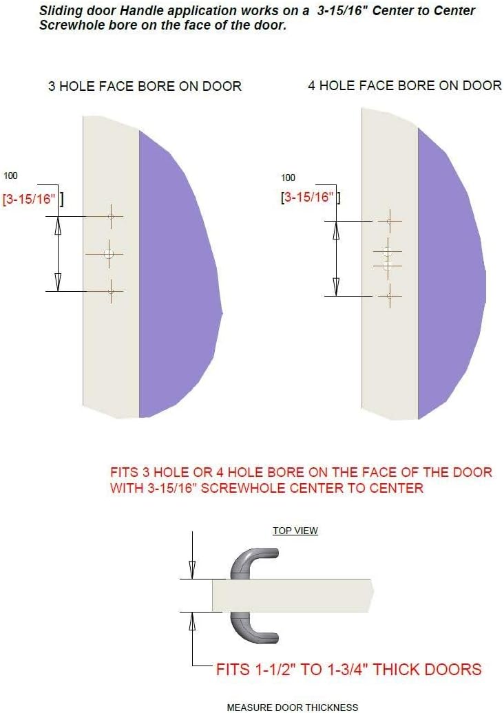 The Euro Charlotte sliding door handle set is a dependable yet secure hardware set for the sliding patio door at your home or business. The sleek C-shaped handle has a thumb latch that unlocks and locks the door, while the exterior slide lays flatter and provides a firm grip. This set makes it easy to secure your patio entrance against unwanted entry, giving you peace of mind. Since these patio door handles are nonhanded, you can use this set with both left- and right-handed doors. The brushed stainless finish patio door handle is a sleek, contemporary look for your space, and it coordinates with many exterior and interior styles. Brushed stainless steel has a matte look and hides fingerprints and watermarks well. The hardware is impact-resistant for greater security and made with waterproof materials, allowing it to withstand moisture from the weather, cleaning and other exposure. This patio door handle is compatible with sliding doors that are up to 1 3/4 inches thick, have a mortise lock, use a center-to-center screw hole spacing of 3 15/16 inches, and have a door face with 3 or 4 bore holes. Installation is simple and involves screwing the handle in place with the provided hardware. The specifications for the Euro Charlotte sliding door handle set are as follows: - 7.362 length on outside slide - 7.52 x 1.01 inches for the handle plate - 1.617 pounds total weight