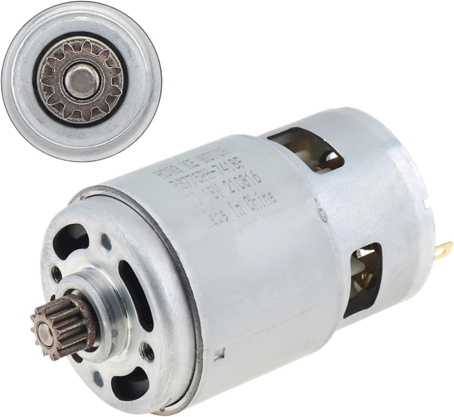 Power Transmission ProductsCommutation: BrushOutput Power: 100WType: Micro MotorVoltage: 18VUsage: Home ApplianceFeatures: - Gear has fine workmanship.- all copper coil, high speed and strong output power.- RS775 / RS 550 11 tooth 18V reciprocating saw motor.- Suitable for: reciprocating saw, small hand saw, multi-function saw, etc.- With cooling fan, the cooling effect is remarkable and the use is longer.Product Weight: 385 G / 13.58 OuncesProduct Dimensions (L*W*H): 87*46*46 MM / 3.43*1.81*1.81 InchesPackage Weight: 387.0 G / 13.65 OuncesPackage Dimensions (L*W*H): 90*46*46 MM / 3.54*1.81*1.81 InchesRetail Packaging: Yes, General BoxPackage Including: 1 x 11 Teeth DC Motor