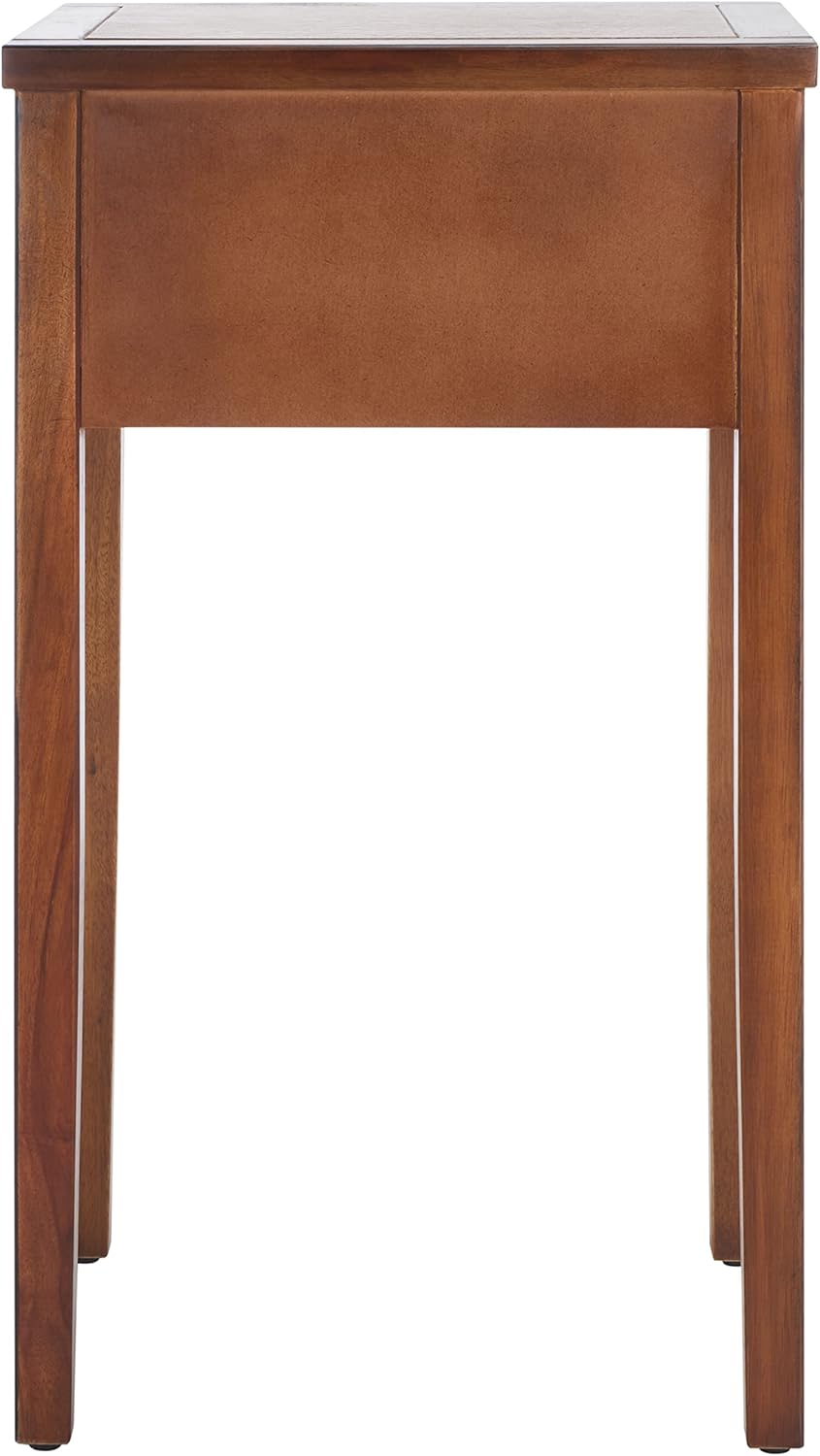 The Abel end table, in warm brown finish, evokes Craftsman style with its clean lines and practical storage. Crafted from pine with an ample drawer and tall straight legs, this end table will enhance casual living rooms, family rooms and bedrooms with its simple charm. The enduring Craftsman design insures the versatile Abel table works as well with transitional furnishings as with country and cottage pieces.