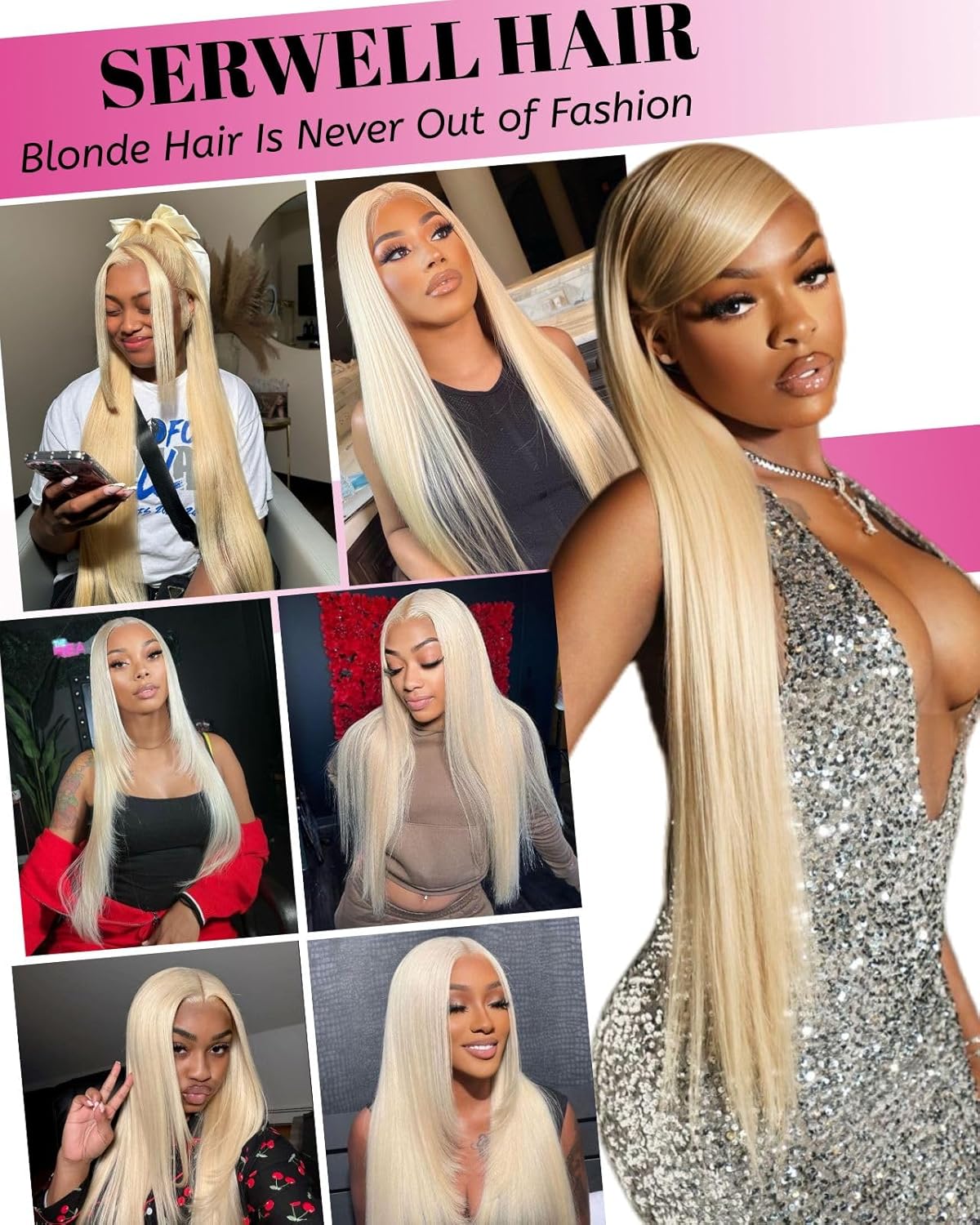serwell 30 Inch 613 13x6 Lace Front Wig Human Hair Straight 613 Lace Front Wig Human Hair 200% Density Blonde Wigs Human Hair 13x6 HD Lace Frontal Wigs Pre Plucked True Length Longer Life