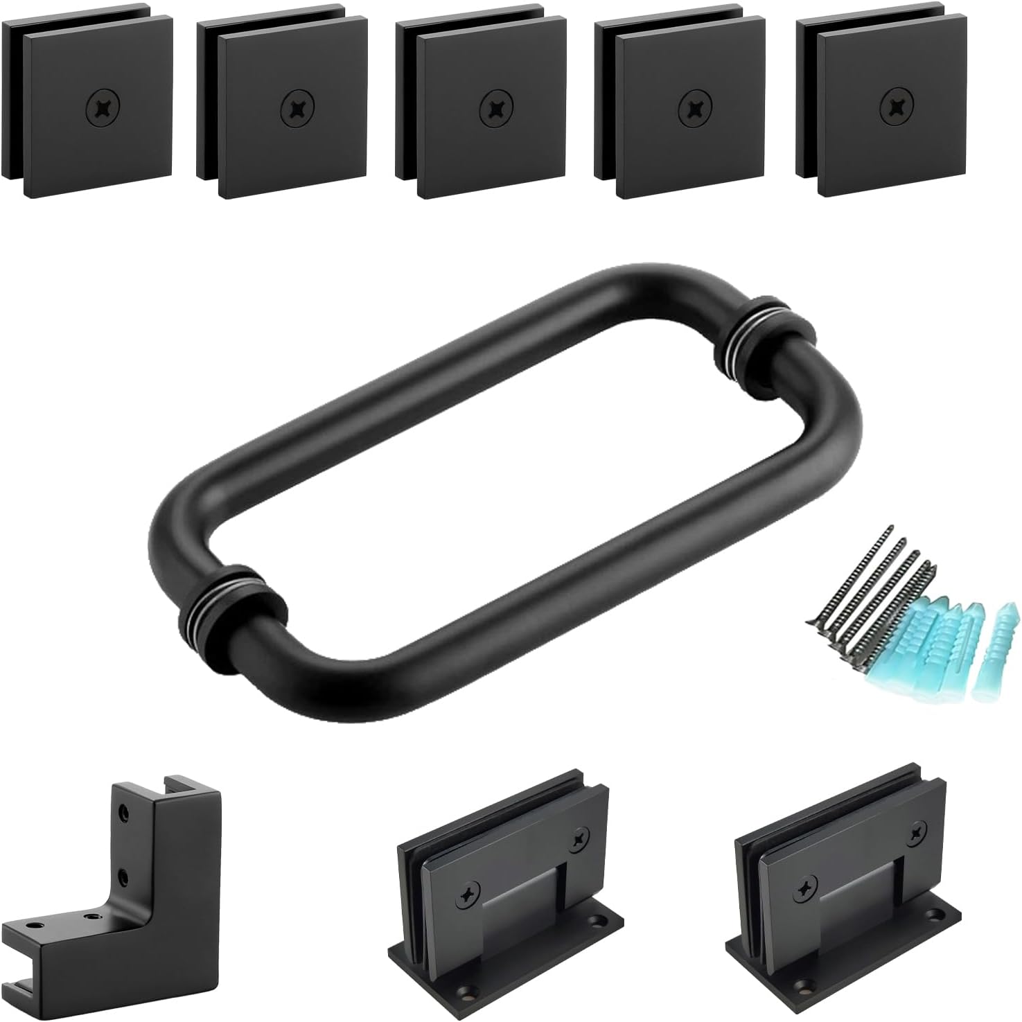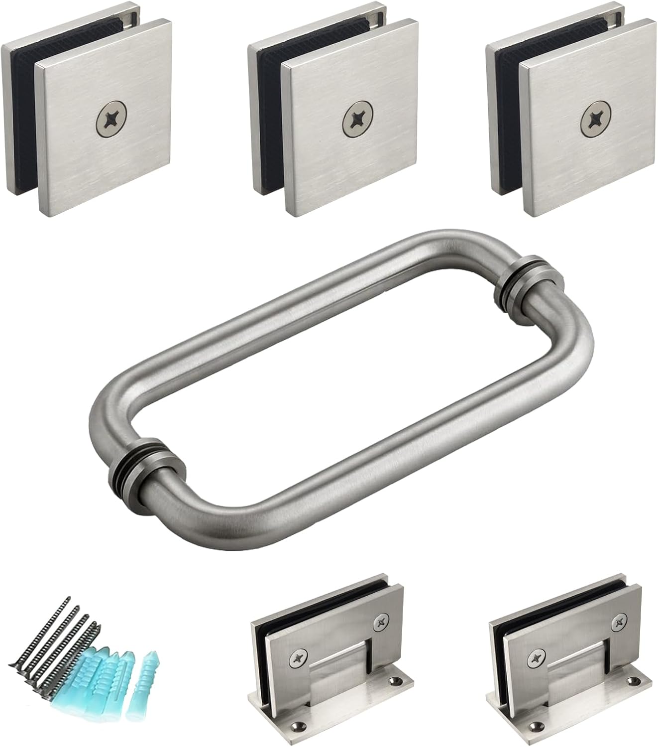 | Included Components | 2 shower door hinges, 5 shower door glass clamps, a sleeve-over glass clamp, back-to-back shower door handle |