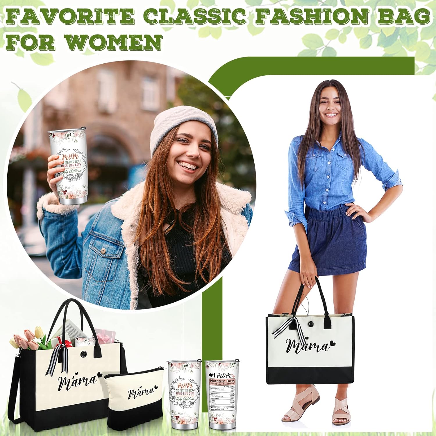 Features: Thoughtful gift: You can send our grandma gift as thoughtful gift including Thanksgiving gift, Christmas gift, New Year gift to your beloved grandma, she will feel your heart. Serviceable material: We use materials that do not fade and are sturdy, so the gifts for grandma will company you or your grandma a long time. Specifications: Material: Tote bag: canvas Makeup bag: canvas Stainless steel tumbler: stainless steel Color: as shown in the pictures Size: Tote bag: 16.93 x 12.6 x 6.69 inches/ 43 x 32 x 17 cm Makeup bag: 9.84 x 6.69 x 2.76 inches/ 25 x 17 x 7 cm Stainless steel tumbler: 20 oz Package includes: 1 x Tote bag 1 x Makeup bag 1 x Stainless steel tumbler Notes: Manual measurement, please allow slight errors on size. The color may exist a slight difference due to different screen displays. The words on the products are only for expressing product's characteristic, not for trademark using, our trademark is Silkfly, kindly noted.