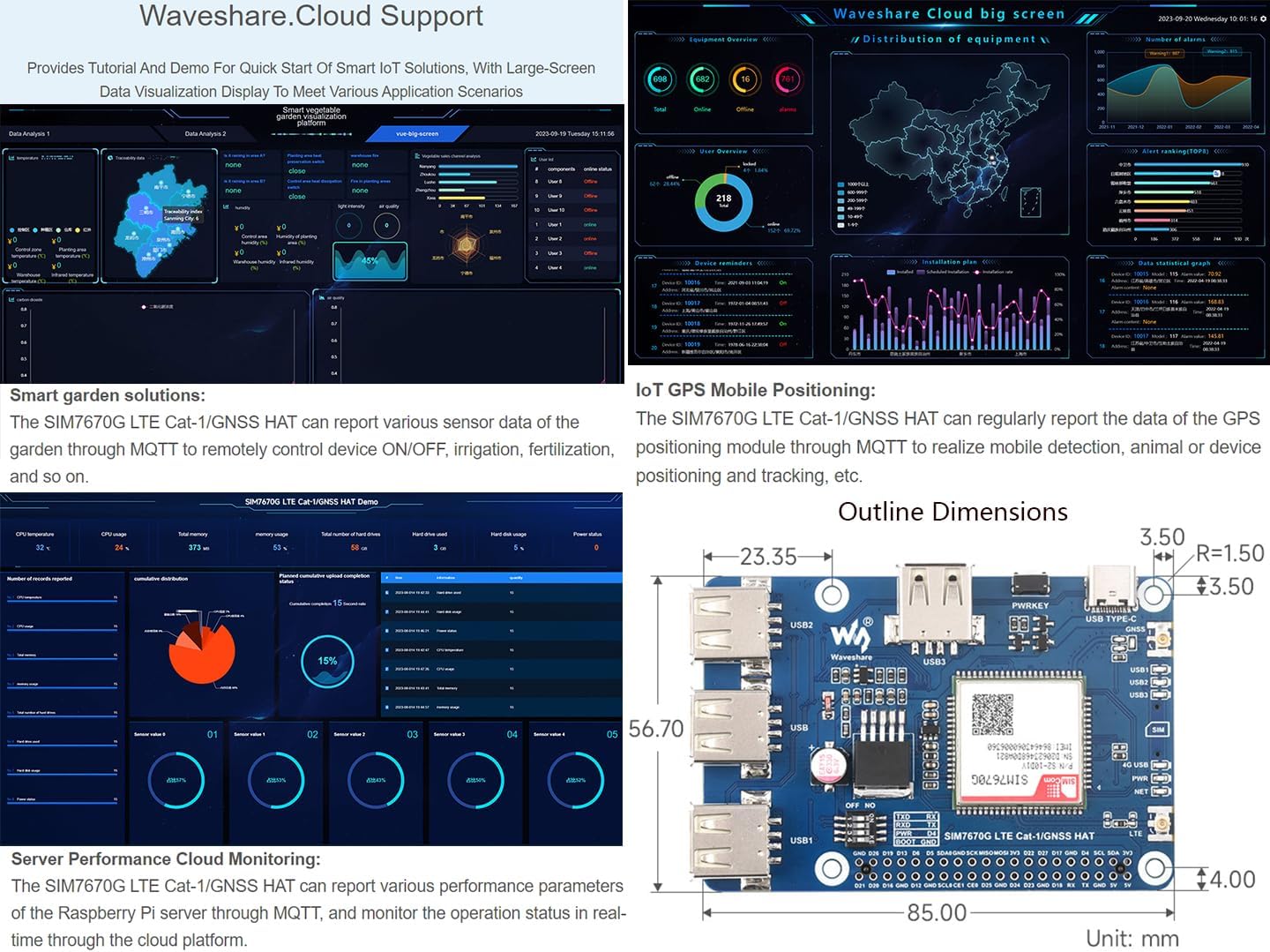 | BuiltIn Media | 2×20PIN female pinheader x1;USB 3.0 Adapter x1;USB 2.0 Adapter x1;Screws pack x1, GPS Antenna x1, LTE Antenna x1, SIM7670G Cat-1/GNSS HAT x1, USB-A to USB-C cable x1 |
