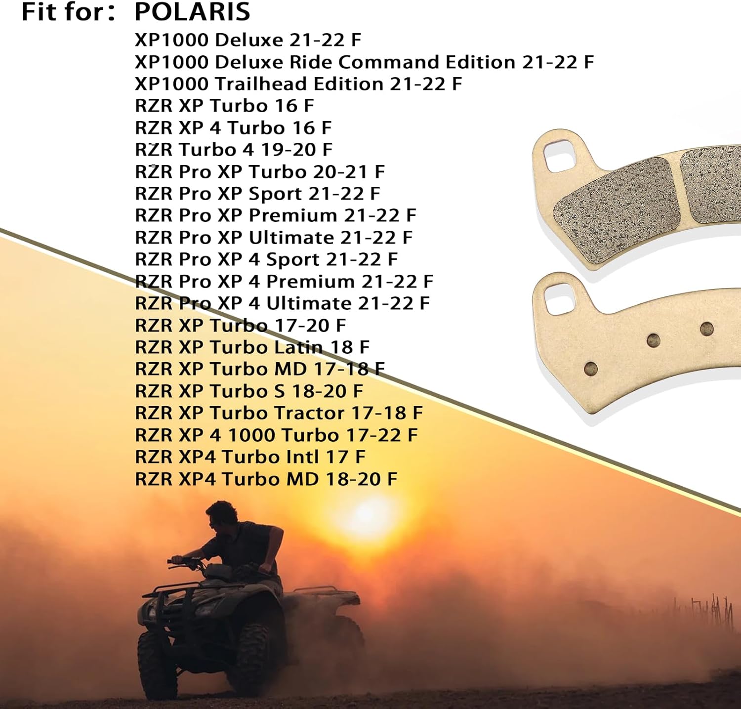 Fit for:Polaris RZR Pro XP Turbo: 2020 2021Polaris RZR Pro XP Sport: 2021 2022Polaris RZR Pro XP Premium: 2021 2022Polaris RZR Pro XP Ultimate: 2021 2022Polaris RZR Pro XP 4 Sport: 2021 2022Polaris RZR Pro XP 4 Premium: 2021 2022Polaris RZR Pro XP 4 Ultimate: 2021 2022Polaris RZR XP Turbo: 2016 2017 2018 2019 2020Polaris RZR XP Turbo MD: 2017 2018Polaris RZR XP Turbo S: 2018 2019 2020Polaris RZR XP Turbo Tractor: 2017 2018Polaris RZR XP 4 1000 Turbo: 2017 2018 2019 2020 2021 2022Polaris RZR XP 4 Turbo: 2016 2017Polaris RZR XP 4 Turbo MD: 2018 2019 2020Polaris RZR Turbo 4: 2019 2020Polaris XP 1000 Deluxe: 2021 2022Polaris XP 1000 Deluxe Ride Command Edition: 2021 2022Polaris XP 1000 Edition: 2021 2022