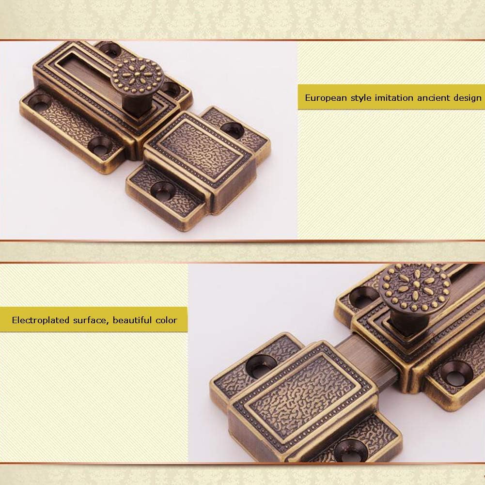 Can be freely installed from different angles.European style, fine workmanship, looks delicate and elegant.Suitable for installation in all kinds of doors, windows, fences, etc.These slide bolt locks are made from Pure copper, providing strength and stability for any door.Simple design to facilitate your installation and maintain,mounting hardware and screws included.Specification:Material: CopperMain Body Size: 50mm x 43mmStyle: European retro styleApplication: bedroom doors, solid wood doors, etc.Package Content:1 x Bolt Latch